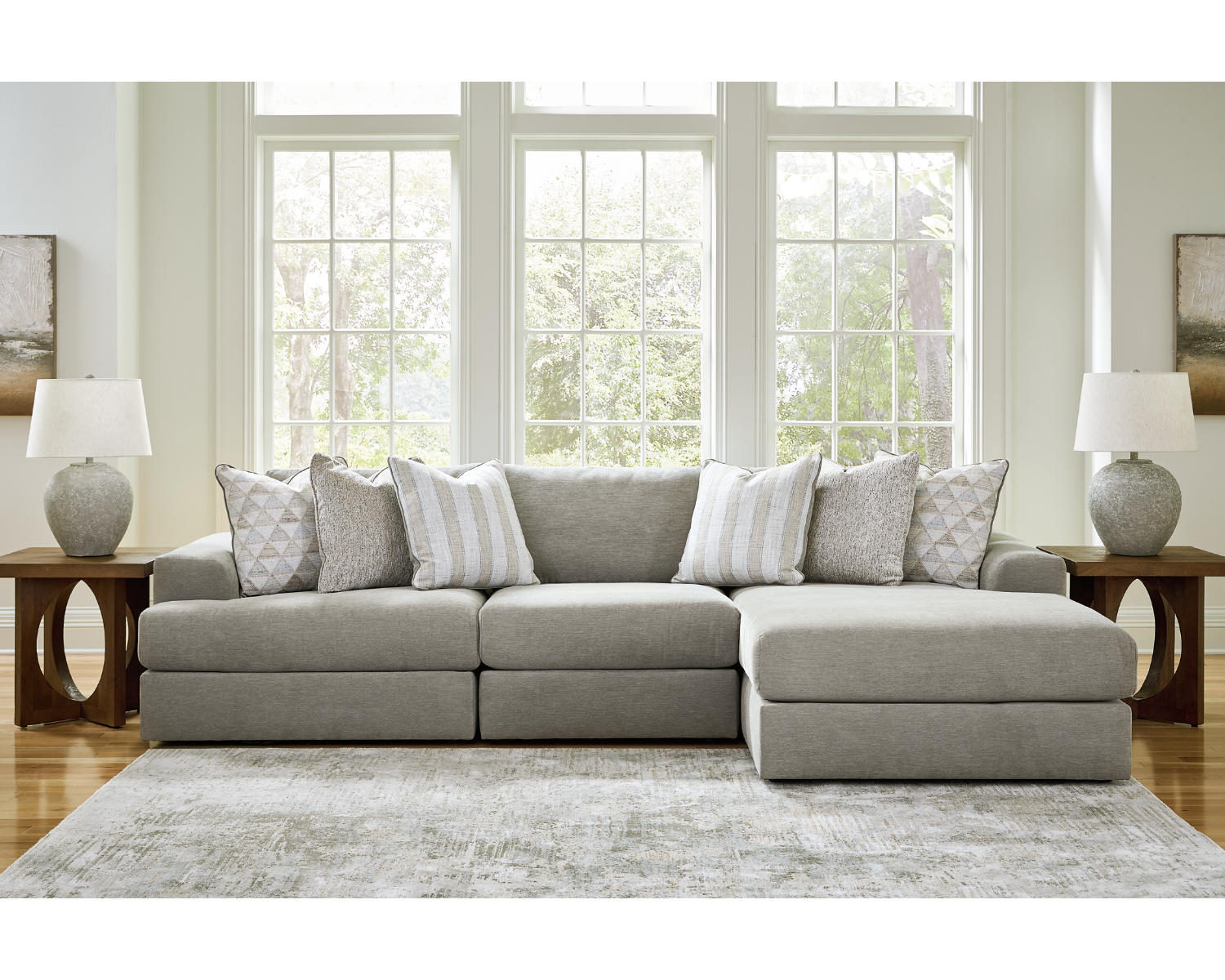 Introducing the Avaliyah 3-Piece Sectional with Chaise in Ash—a versatile seating solution designed for modern living rooms. This three-piece setup offers ample lounging space, with a chaise that invites you to stretch out and relax. It's well-suited for families, roommates, or guests seeking flexible, comfortable seating.