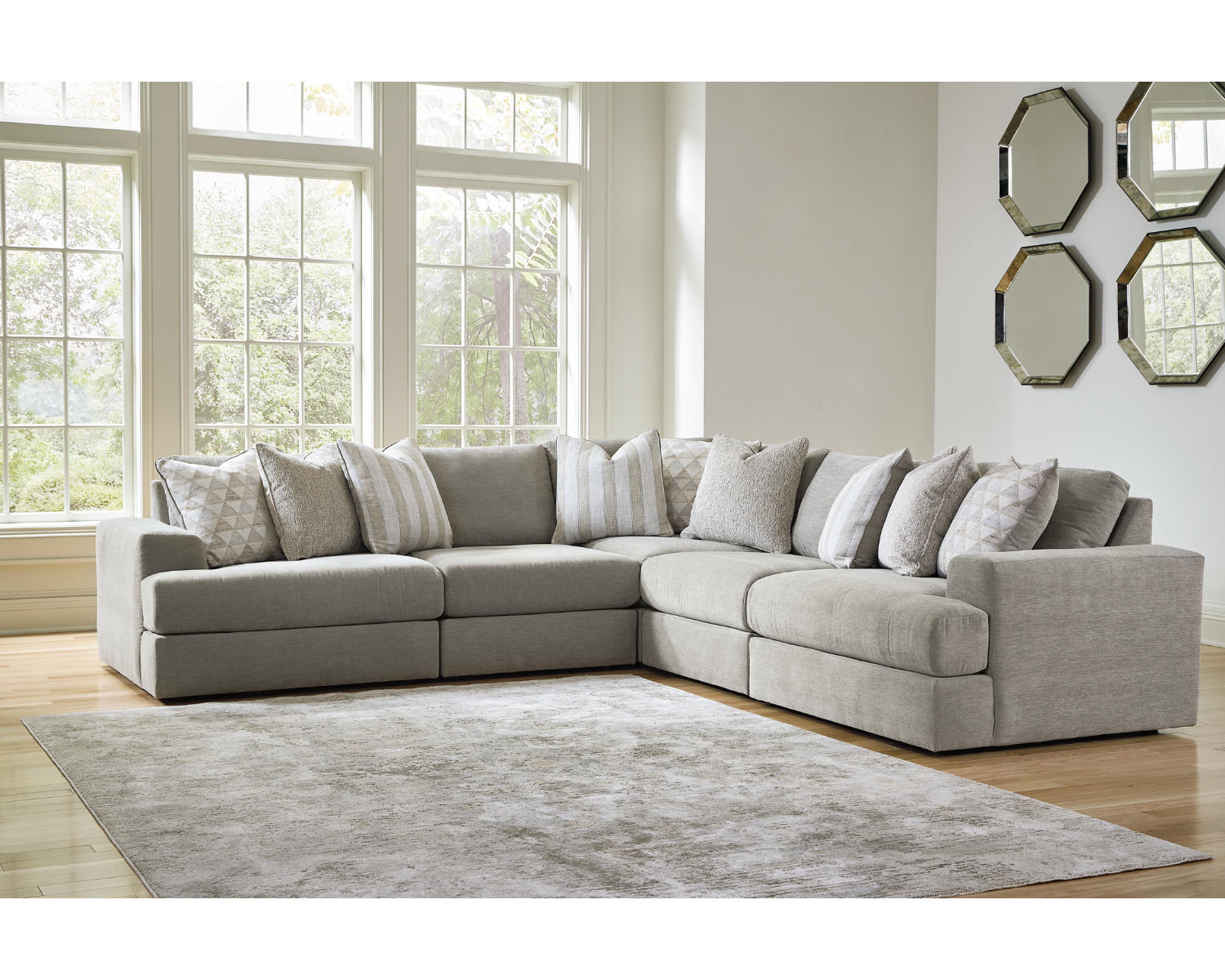 The Avaliyah 5-Piece Sectional is a versatile seating solution in an ash finish, designed for modern living rooms and open floor plans. This modular set is ideal for families and entertaining, offering flexible arrangements you can adapt to your space.