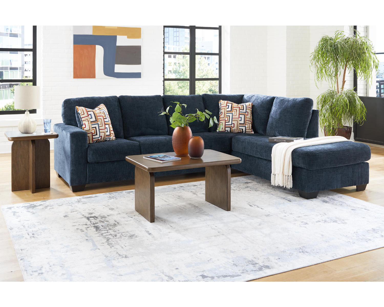 - Includes a two-piece sectional, a coordinating occasional table set, and a lamp for a cohesive look.