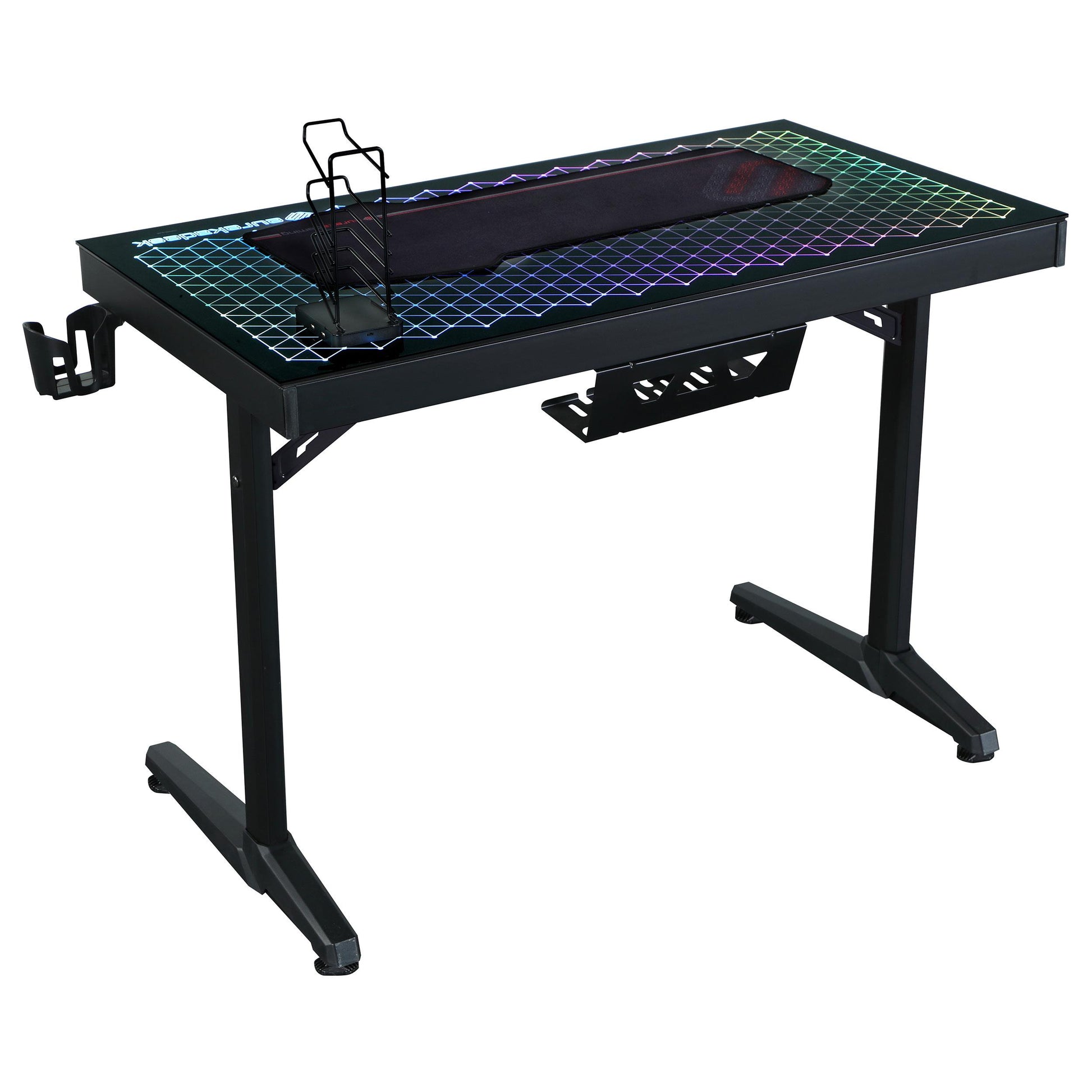 Avoca 43-inch RGB LED Glass Top Computer Gaming Desk Black