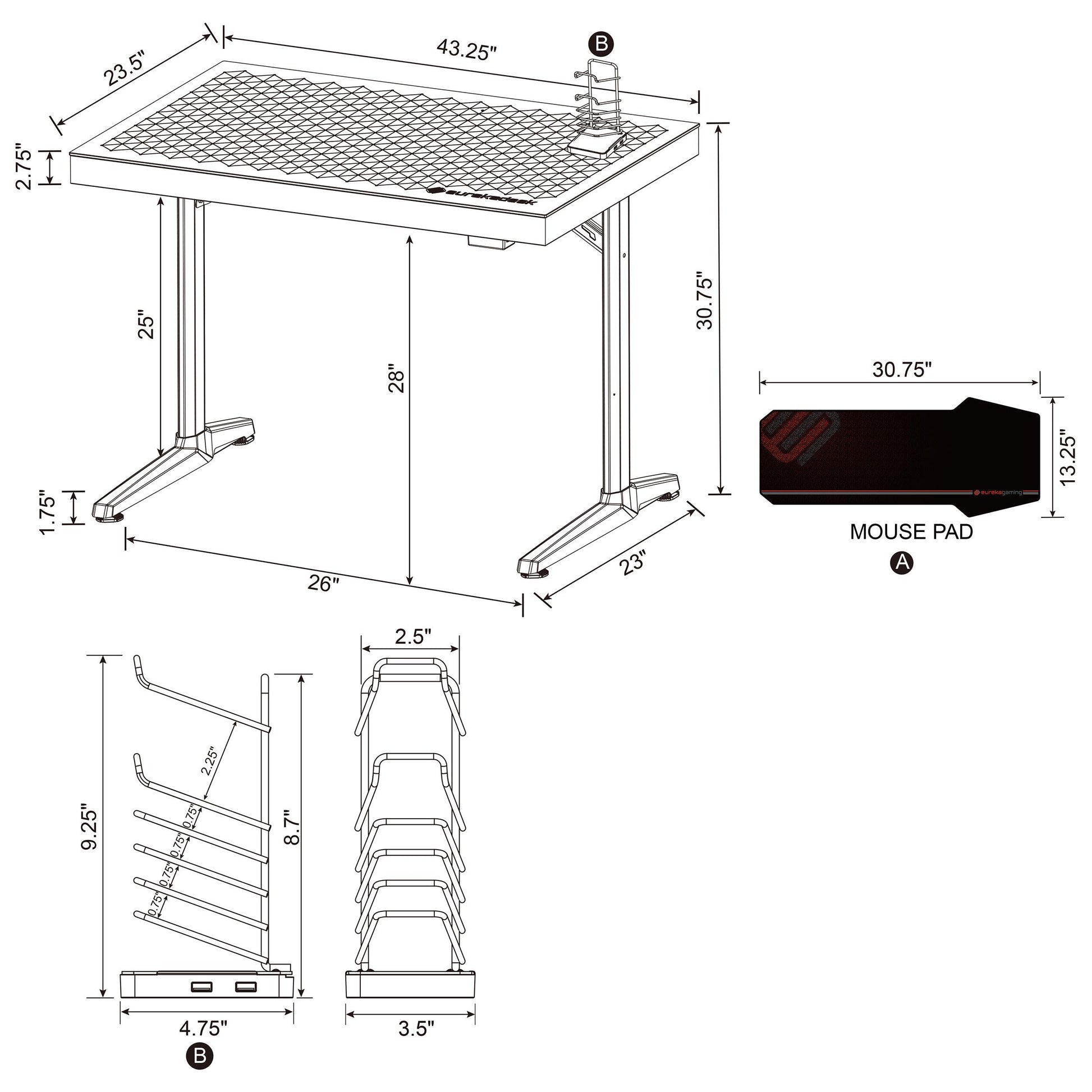 - 43-inch glass top provides ample room for monitor, keyboard, and peripherals with a smooth, easy-to-clean surface.