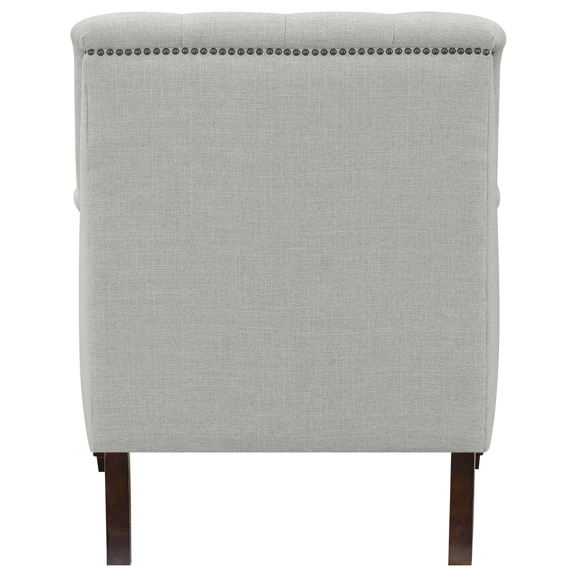 - Grey fabric upholstery for a soft feel and easy pairing with existing decor