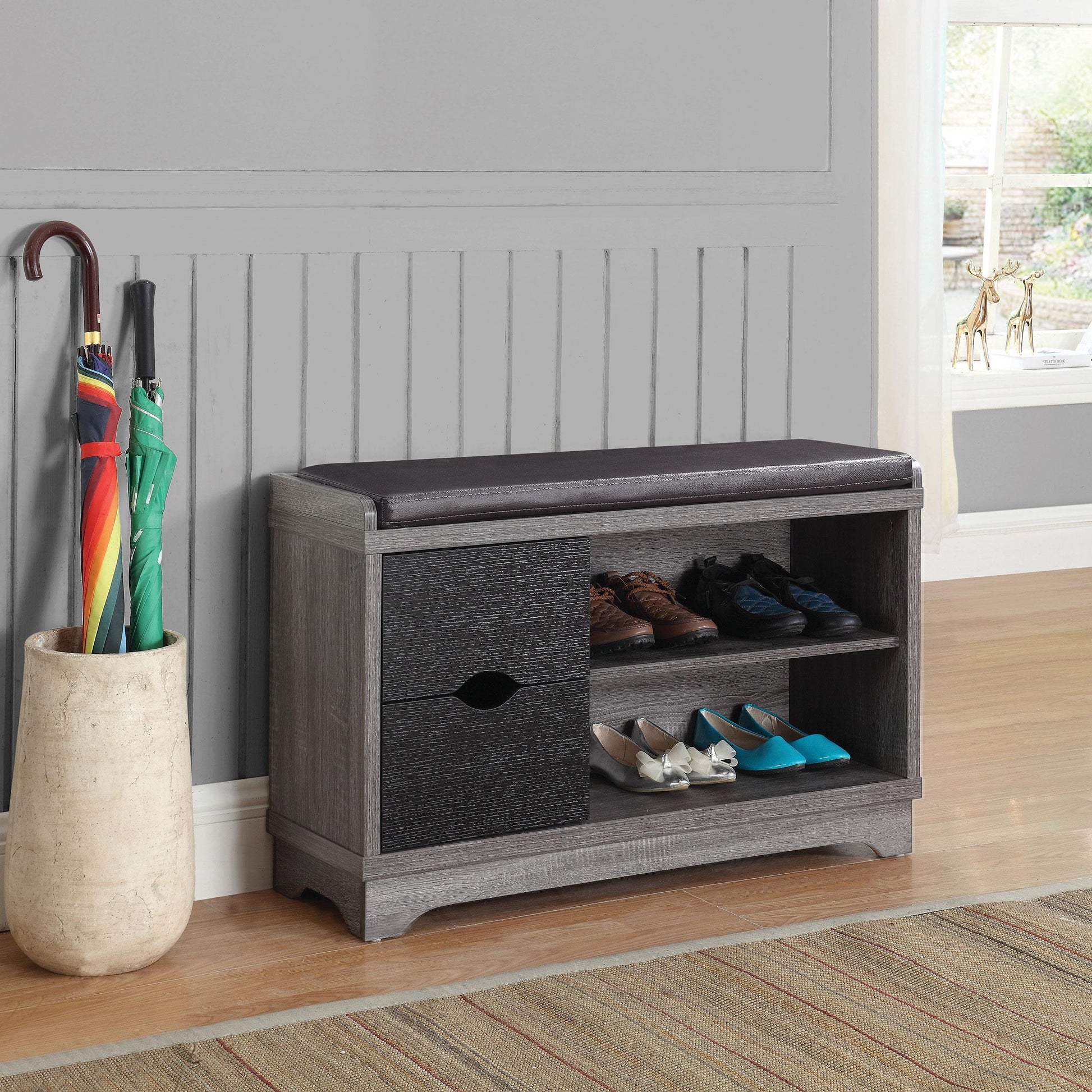 - Compact bench that doubles as seating in hallways, mudrooms, or living areas