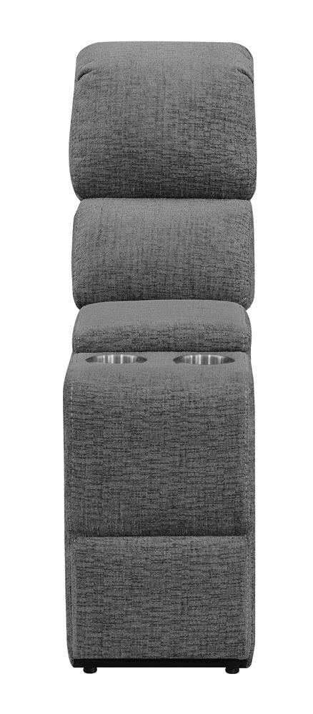 - Upholstered surface in charcoal tone for a soft, inviting touch