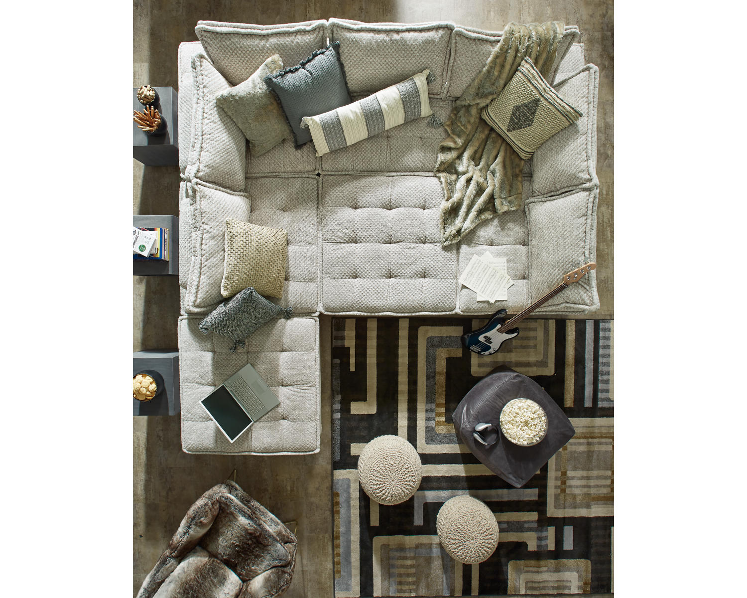 - 7-piece modular configuration: flexible layouts that can be rearranged to suit your room and needs.