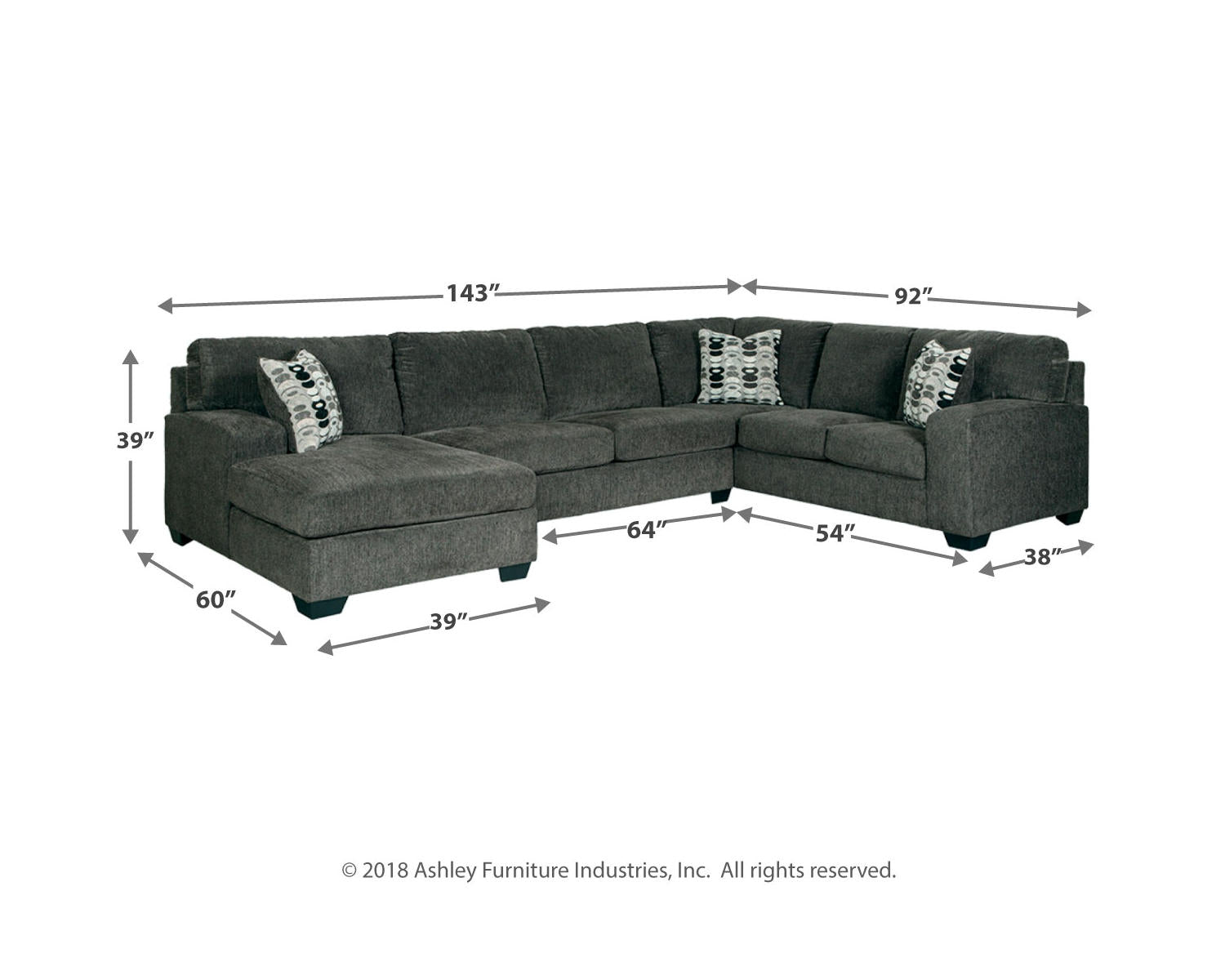 Meet the Ballinasloe 3-Piece Sectional and Ottoman in Smoke—a versatile seating solution designed for modern living spaces. This set brings together a 3-piece sectional with an ottoman, offering comfortable seating for family time, gatherings, and relaxed evenings at home.