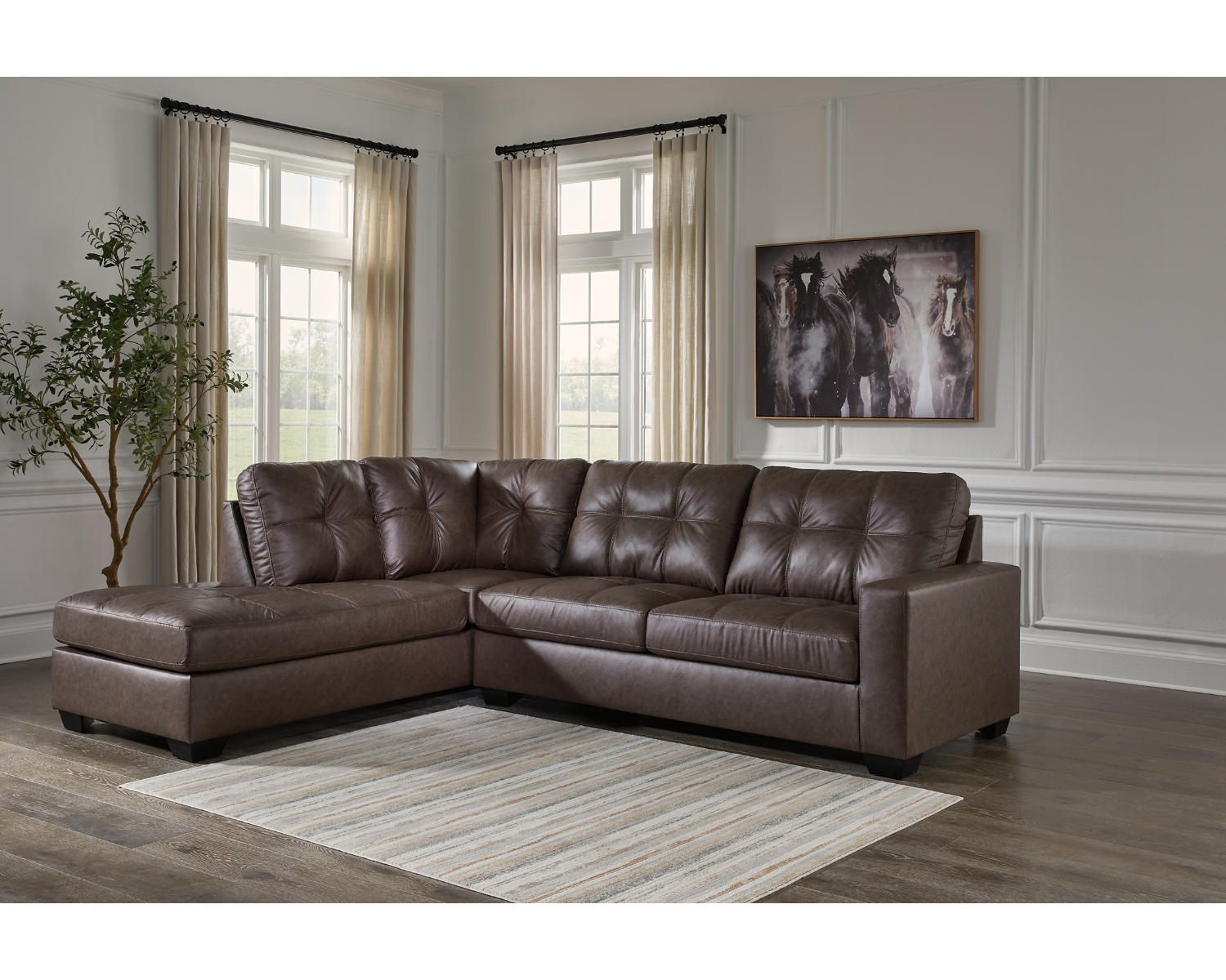 Meet the Barlin Mills 2-Piece Sectional with Chaise in Umber—the perfect balance of comfort and versatility for modern living spaces. This two-piece configuration includes a chaise, giving you room to stretch out or host guests with ease. In a warm umber tone, it blends effortlessly with a variety of decors while offering practical seating for everyday living.