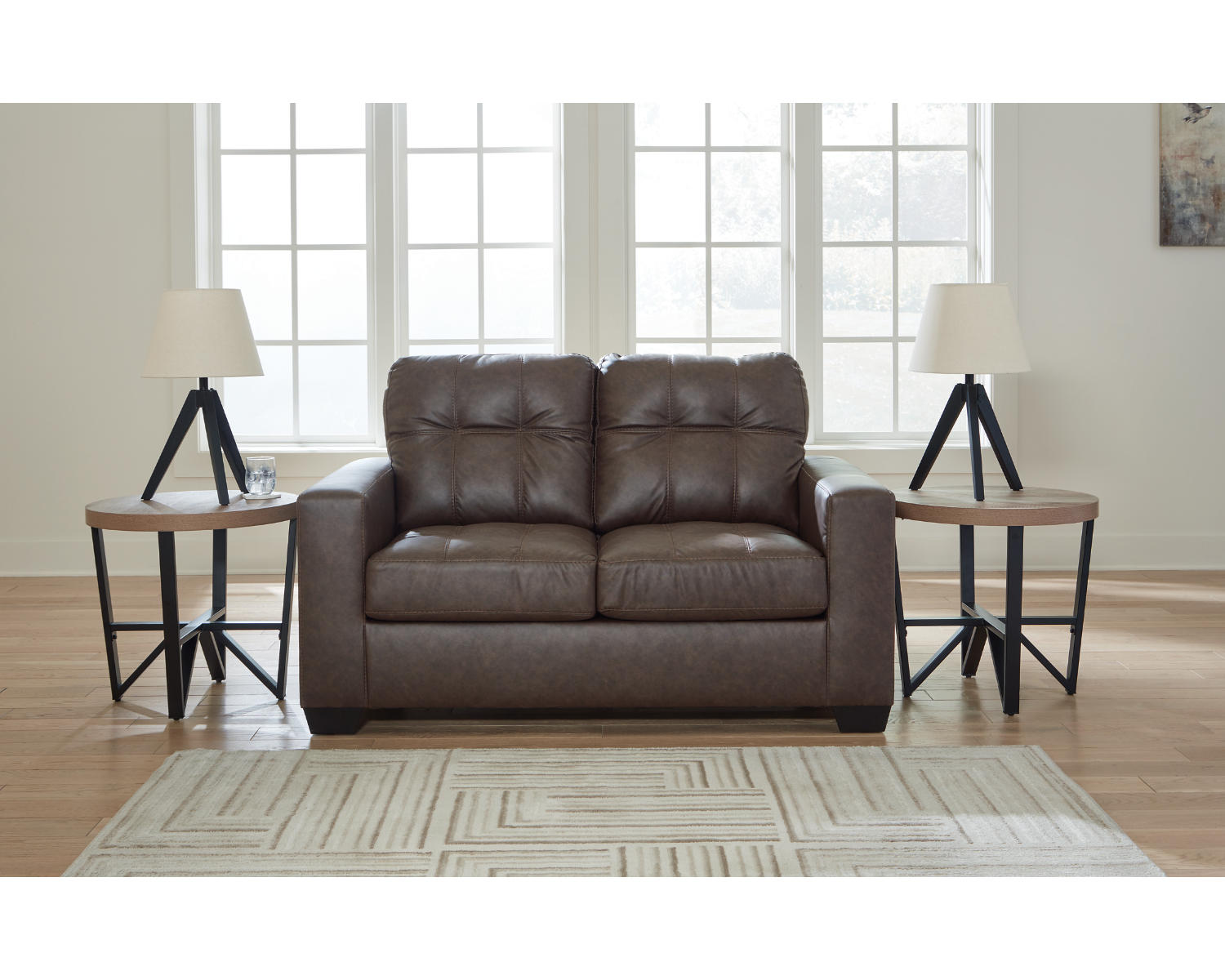 The Barlin Mills Loveseat offers a balanced blend of style and comfort for modern living spaces. Designed for everyday use by two, it brings a warm, inviting presence to any room. With its umber upholstery, this loveseat delivers a versatile look that complements a wide range of decors.