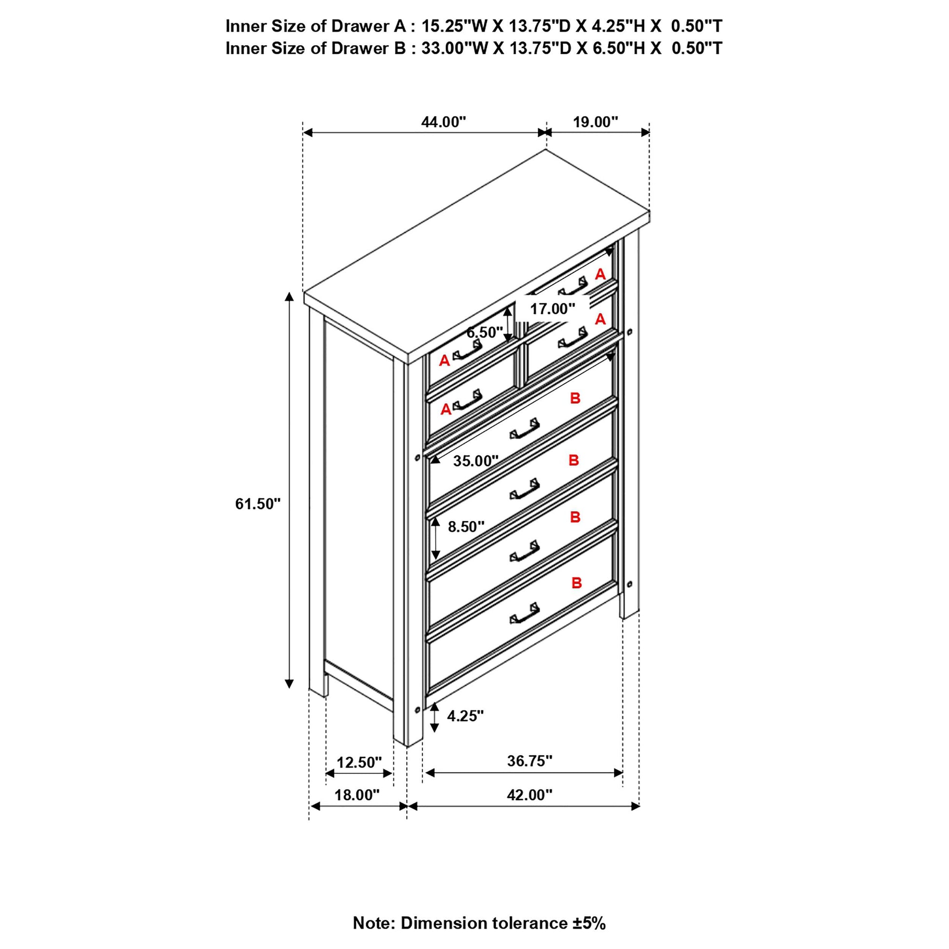 - Eight drawers for organized storage and easy access