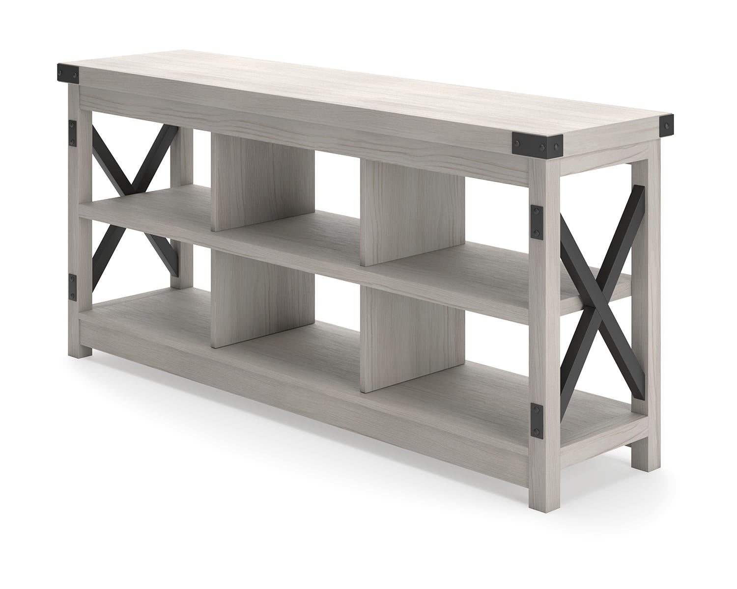- Large surface area to support TVs and AV devices with a two-tone white and black finish