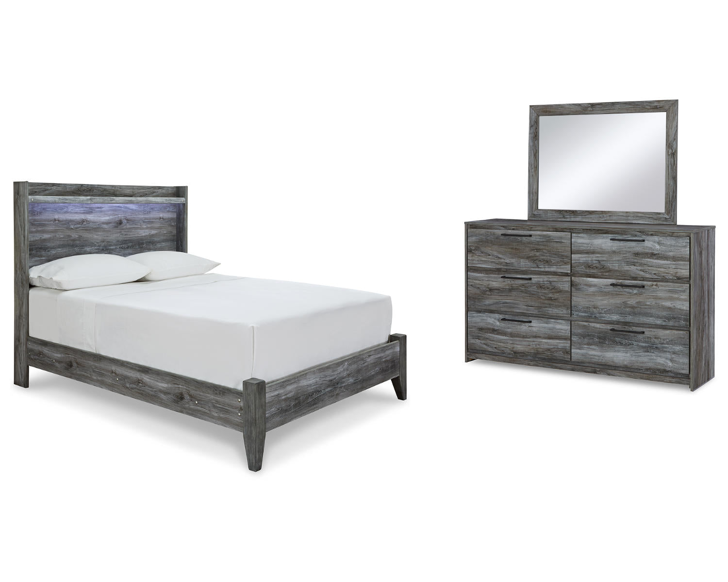 Baystorm Full Panel Bed, Dresser & Mirror — Gray