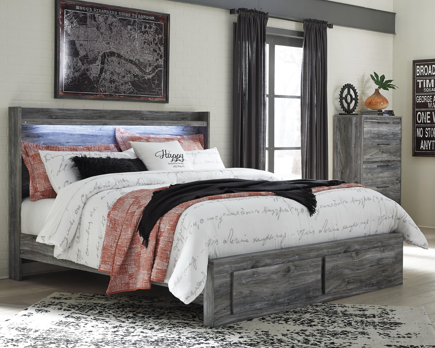 Introducing the Baystorm King Panel Storage Bed with Chest in Gray — the ideal sleep solution for modern bedrooms. This king-size panel bed blends clean lines with practical storage, making it perfect for those who value calm, organized spaces. The integrated chest adds extra storage without clutter, keeping essentials close at hand.