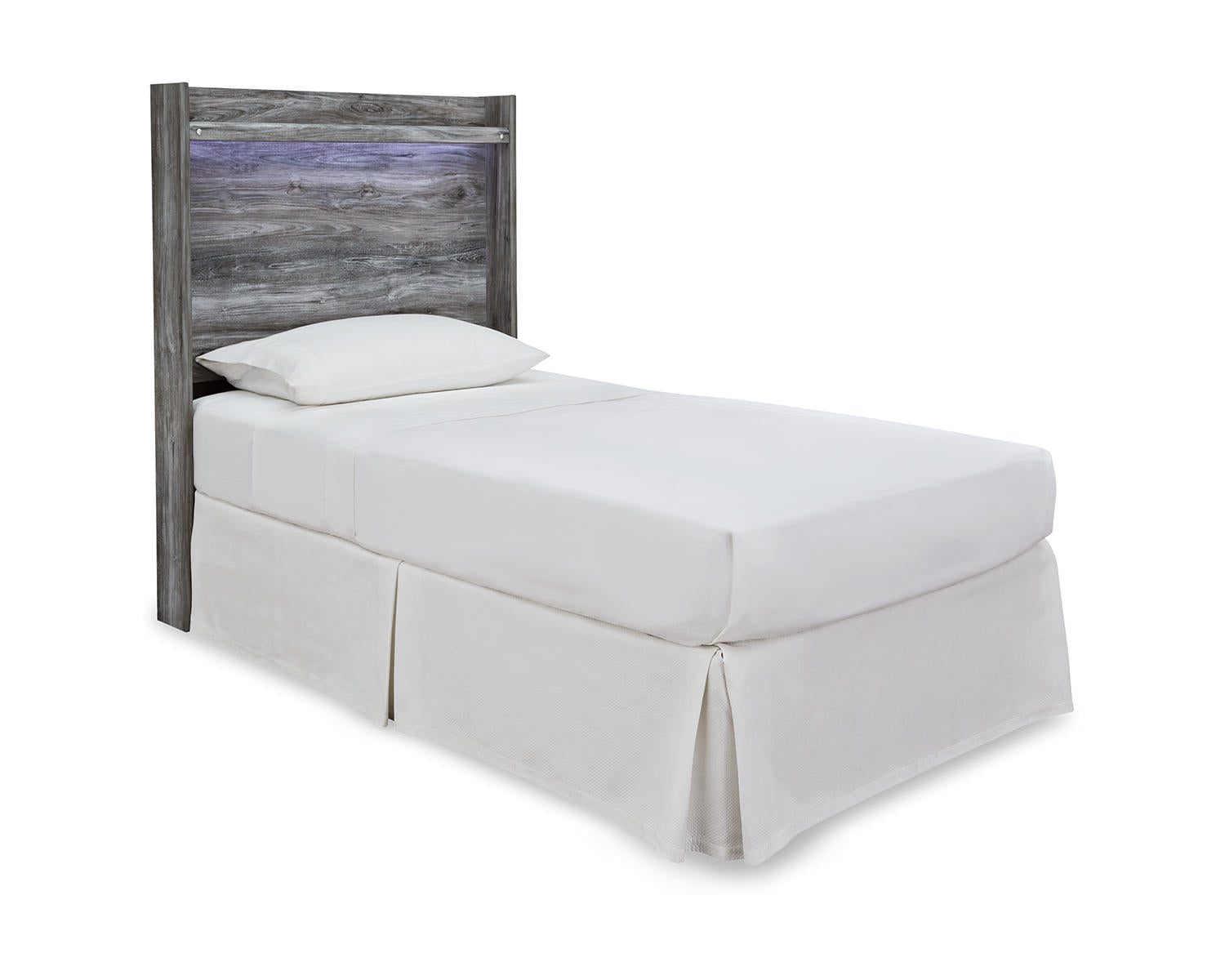 Elevate your bedroom with the Baystorm Twin Panel Headboard in Gray. This twin-size headboard adds a modern touch and a clean backdrop for your bedding, making it a versatile addition for guest rooms or primary bedrooms alike.