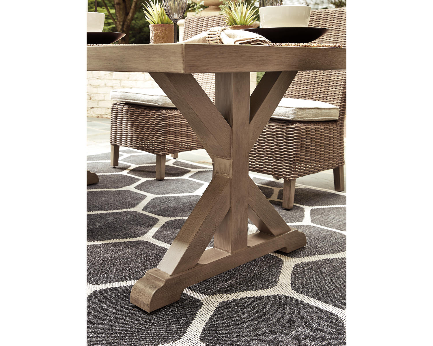 Meet Beachcroft Outdoor Dining Table, a versatile rectangular dining solution designed for patios, decks, and backyard entertaining. This beige-finished table is perfect for family meals and casual gatherings, with an umbrella option to shade guests on sunny days.
