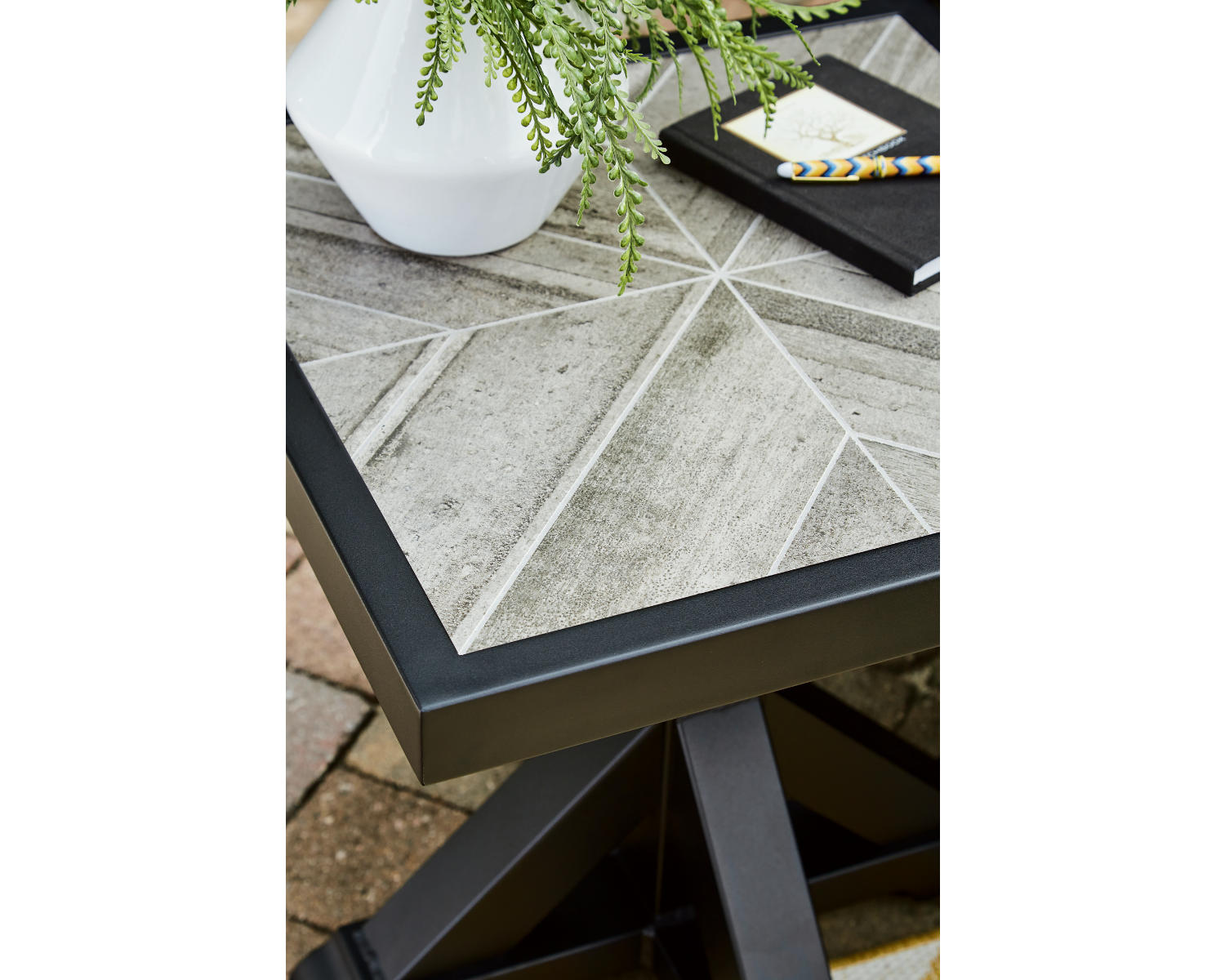 The Beachcroft Outdoor End Table is a compact square side table designed for outdoor spaces. Its Black/Light Gray finish pairs with a wide range of patio furniture, offering a simple and versatile surface for drinks, books, or decor. Perfect beside seating on patios, decks, or poolside lounges.