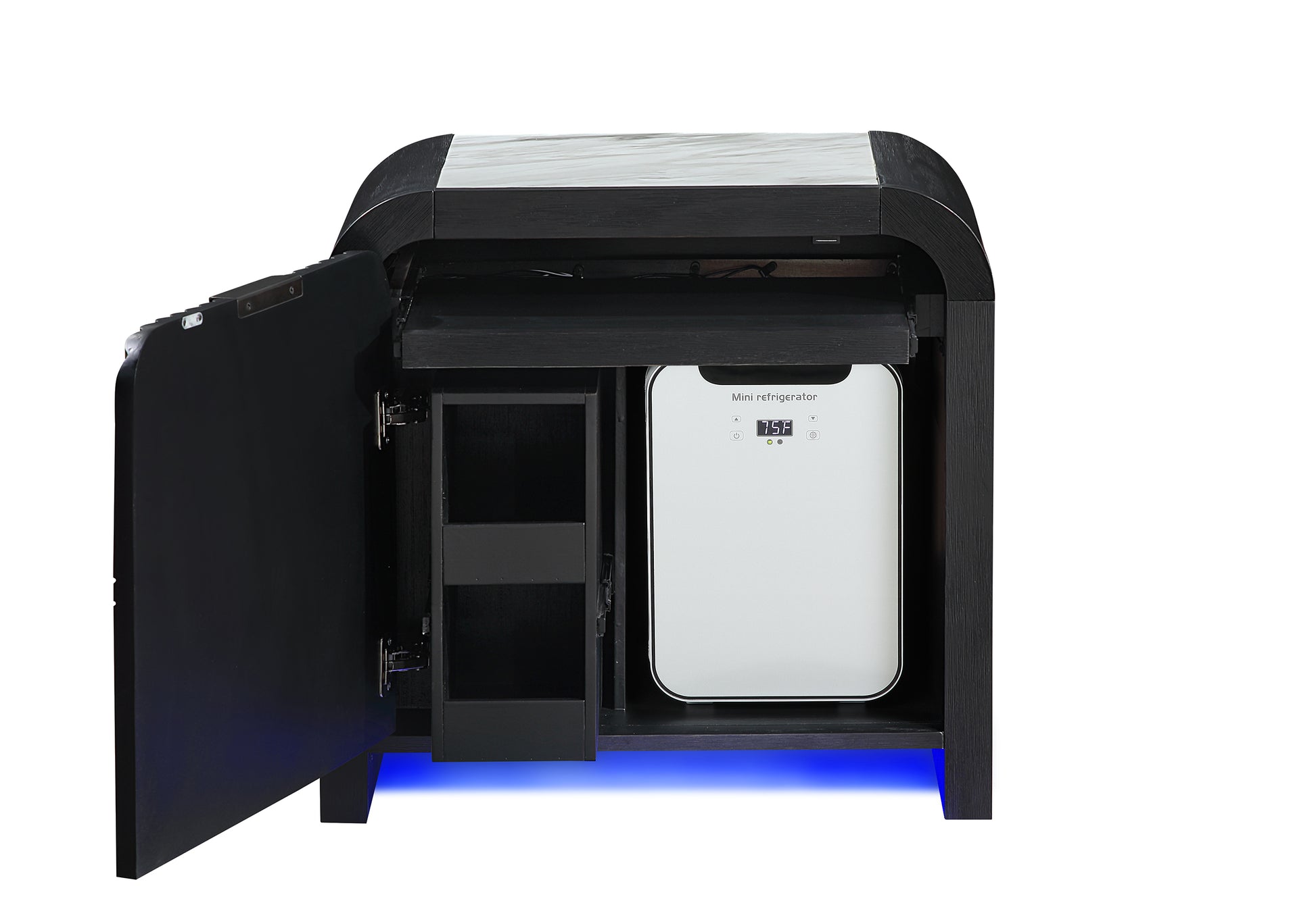 Meet the BECKETT nightstand—a sleek white/black bedside table designed for modern bedrooms. It combines practical tech with clean, two-tone styling. With built-in LED lighting, a cooler, and a speaker, it adds convenience without clutter.