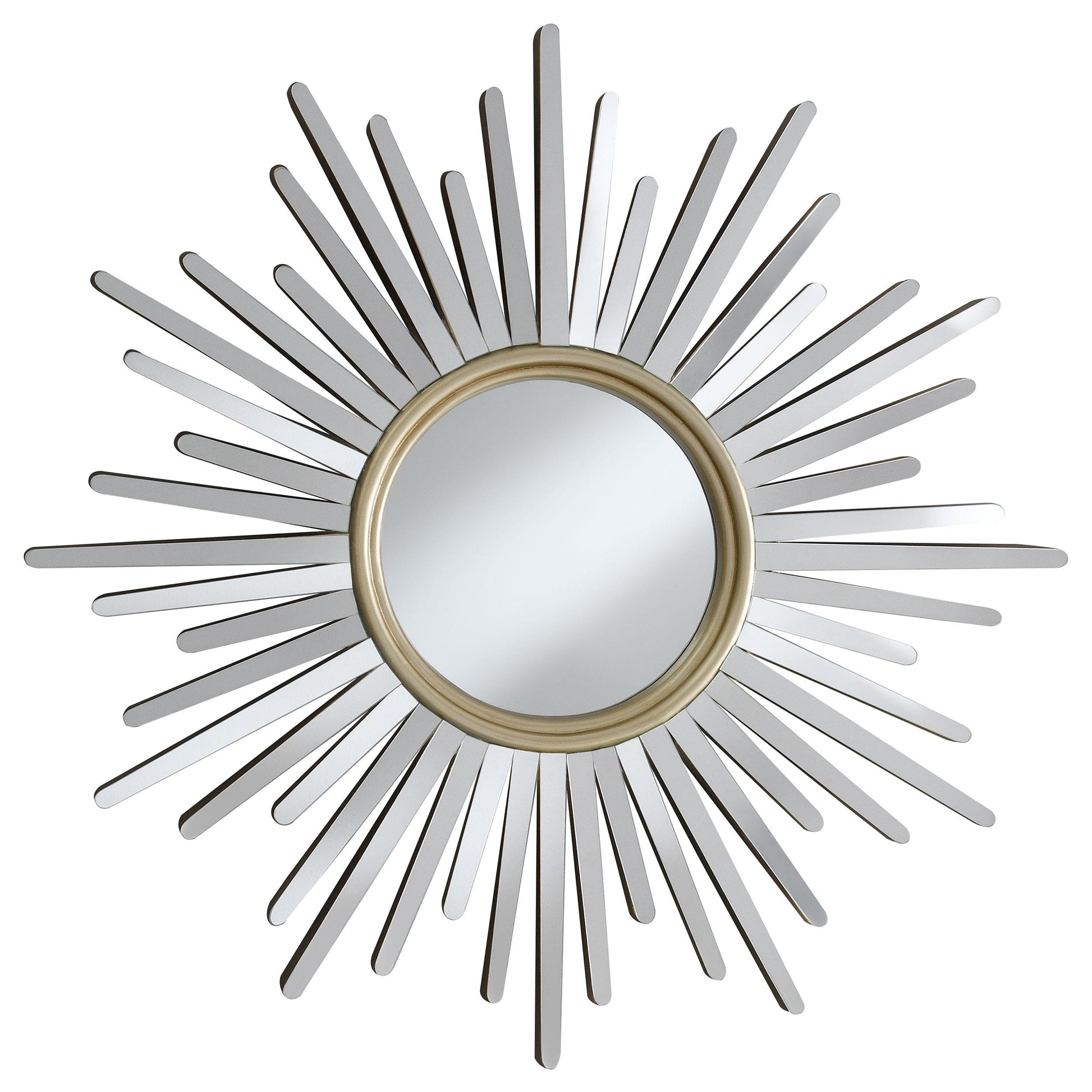- Finish & Style: Champagne-tone rays radiate from a central mirror for a bright, modern look.