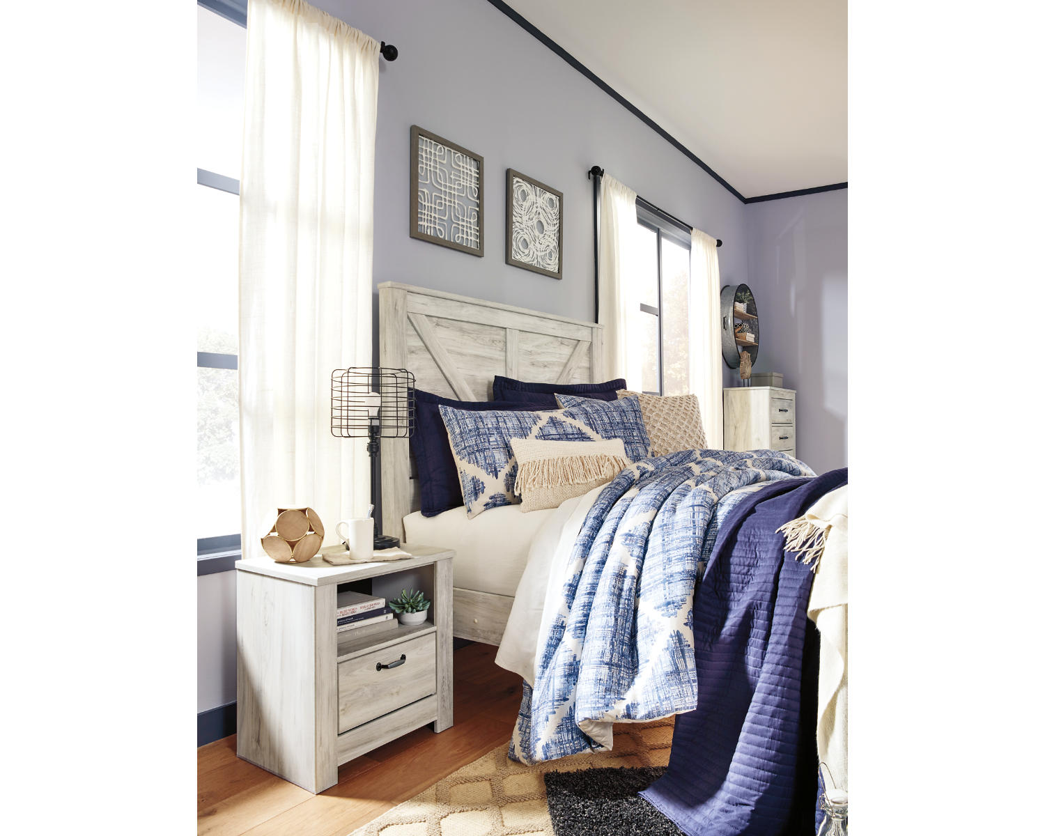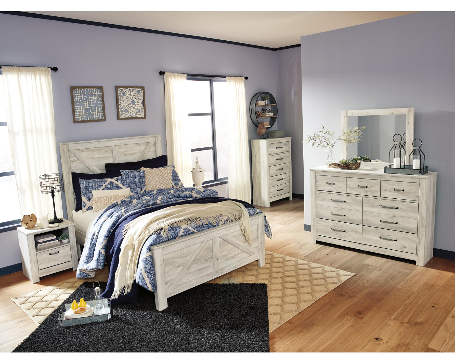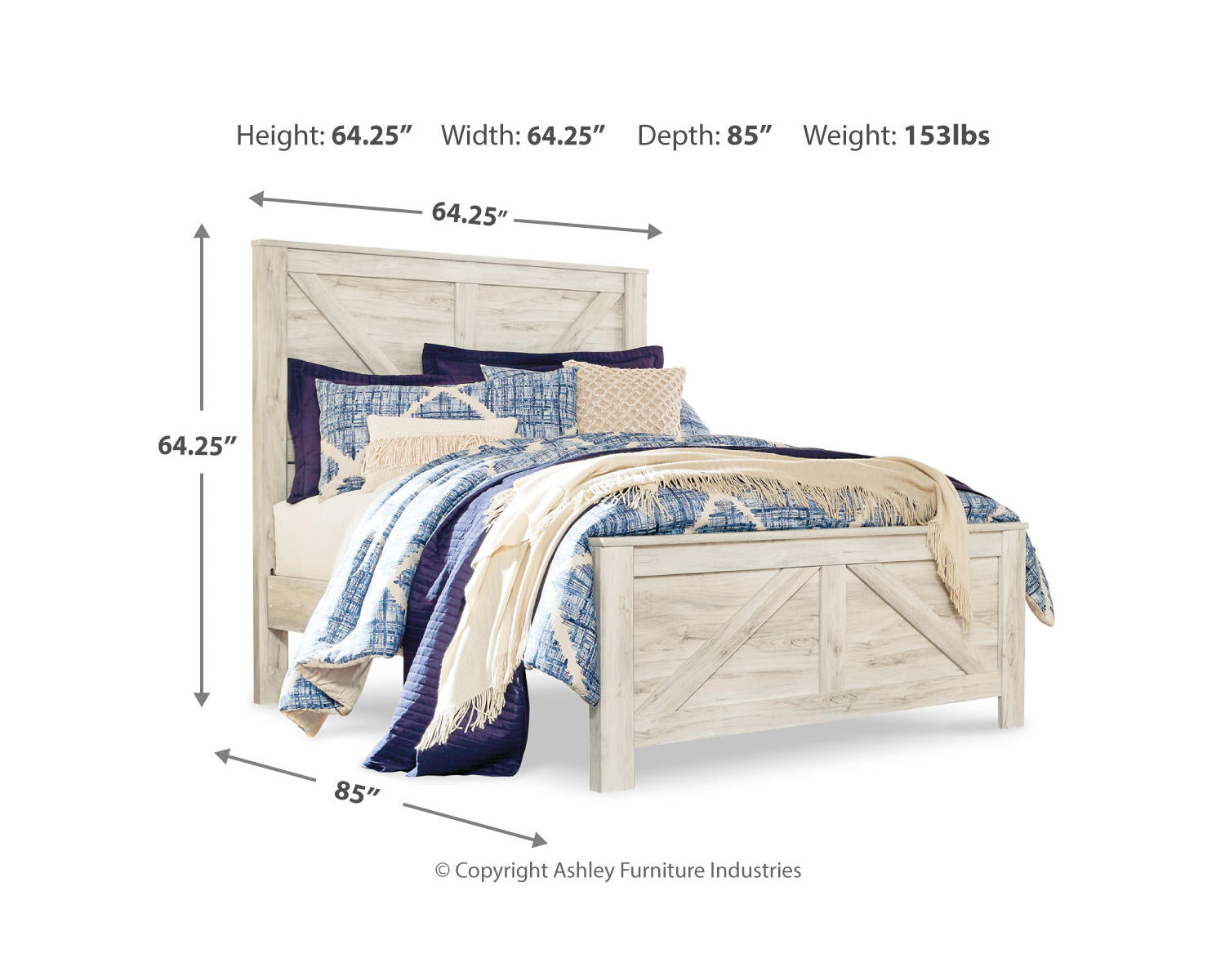 Value: Competitive pricing for a queen-size bed featuring a distinctive crossbuck design and a timeless whitewash finish, offering a compelling combination of style and value.