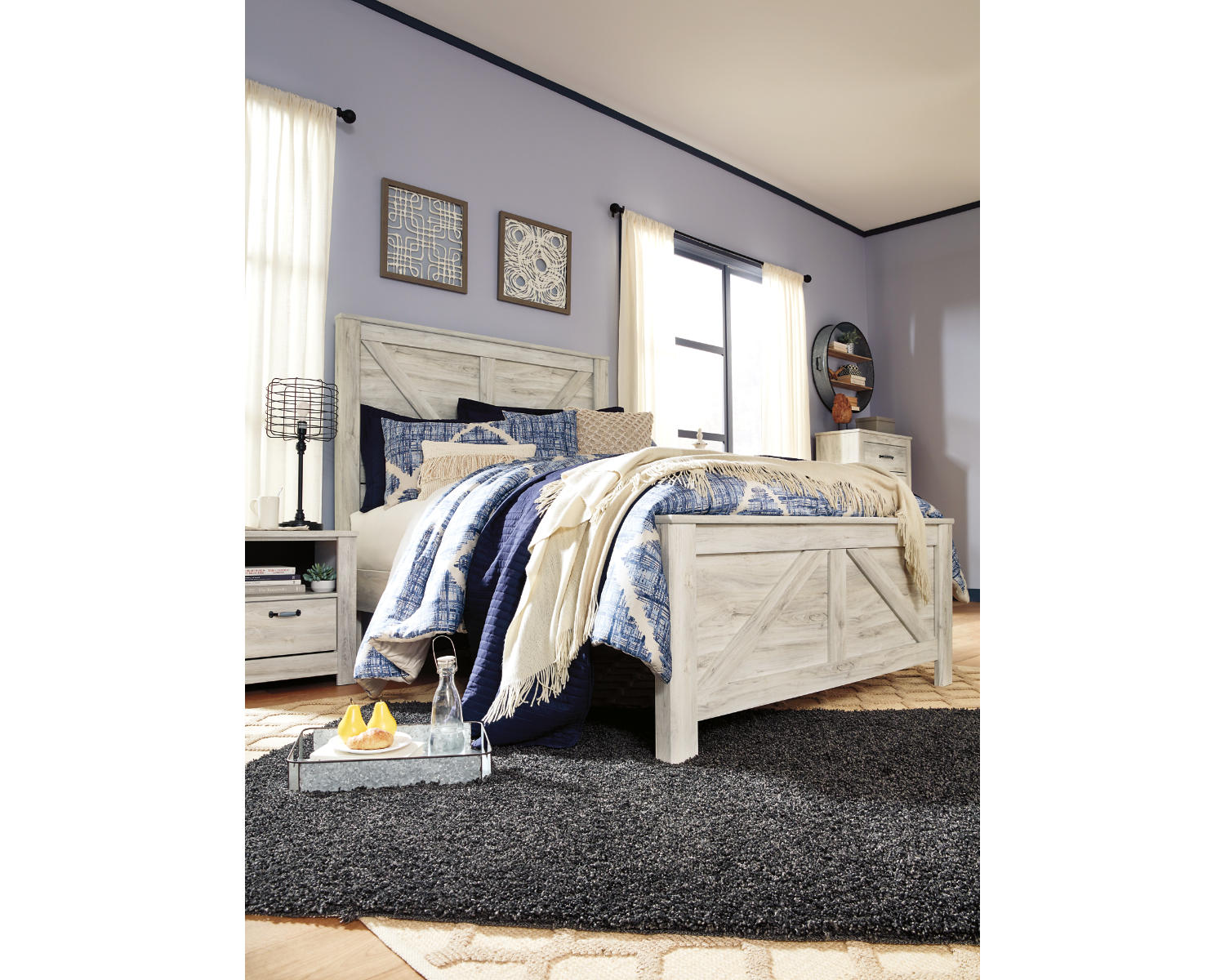 Introducing the Bellaby Queen Crossbuck Panel Bed in a soft whitewash finish. Designed for bedrooms that value classic farmhouse charm, this queen-size bed offers timeless style with clean lines. It serves as a versatile centerpiece that works well with a range of décors and bedding choices.