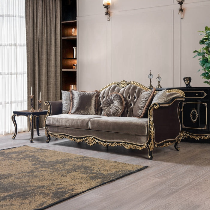 - Finish & Detailing: Gold-painted carved accents contrasted by a polished piano black base.