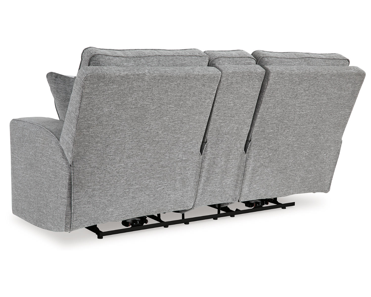 Introducing the Biscoe Power Reclining Loveseat — a versatile seating solution for modern living spaces. This two-seat reclining loveseat is built for comfort with power-adjustable reclining, a built-in console, and adjustable headrests. In pewter, it delivers a clean, contemporary look that fits with a wide range of decors.