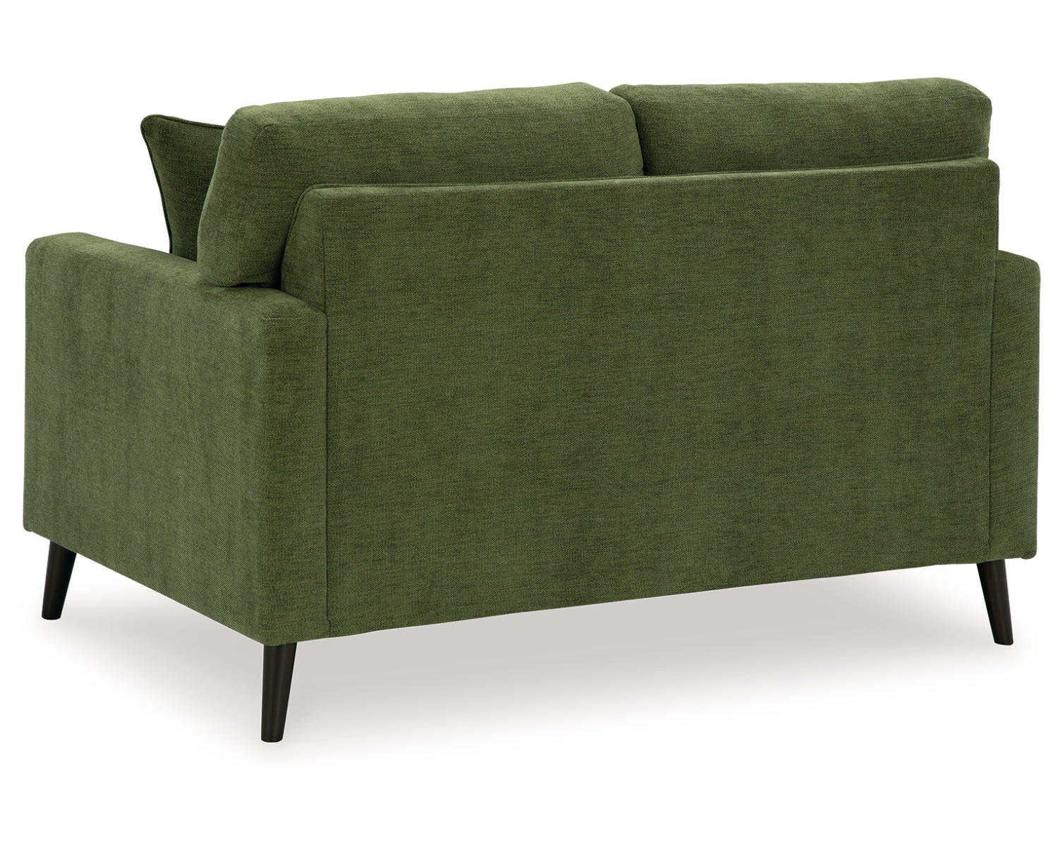 Introducing the Bixler Loveseat, a versatile seating option that blends clean lines with everyday comfort. Finished in an olive hue, it adds a touch of warmth to living rooms, apartments, or cozy nooks while remaining easy to incorporate into existing decor.