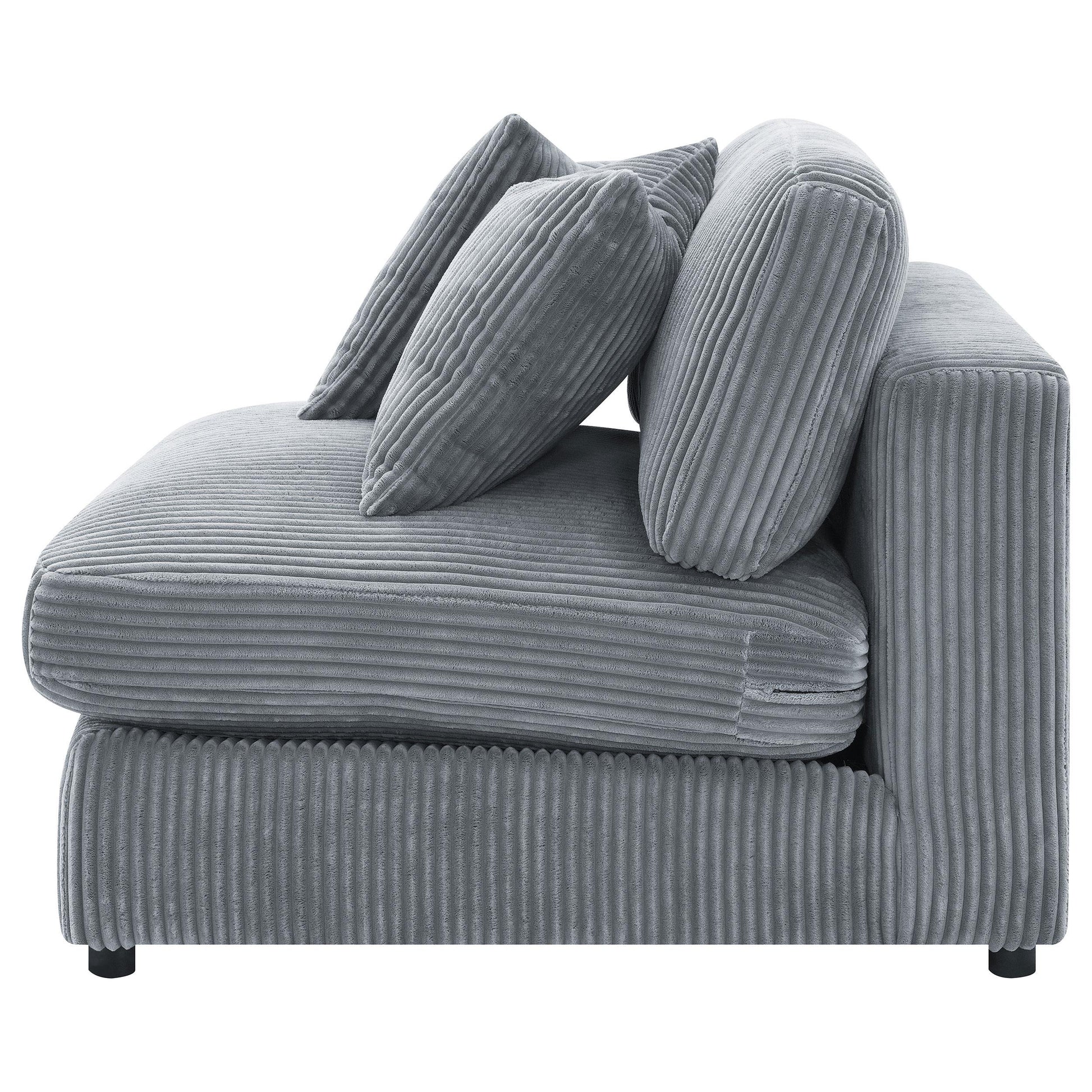 - Fog upholstery: light-gray fabric that hides everyday wear while coordinating with a wide range of decor.