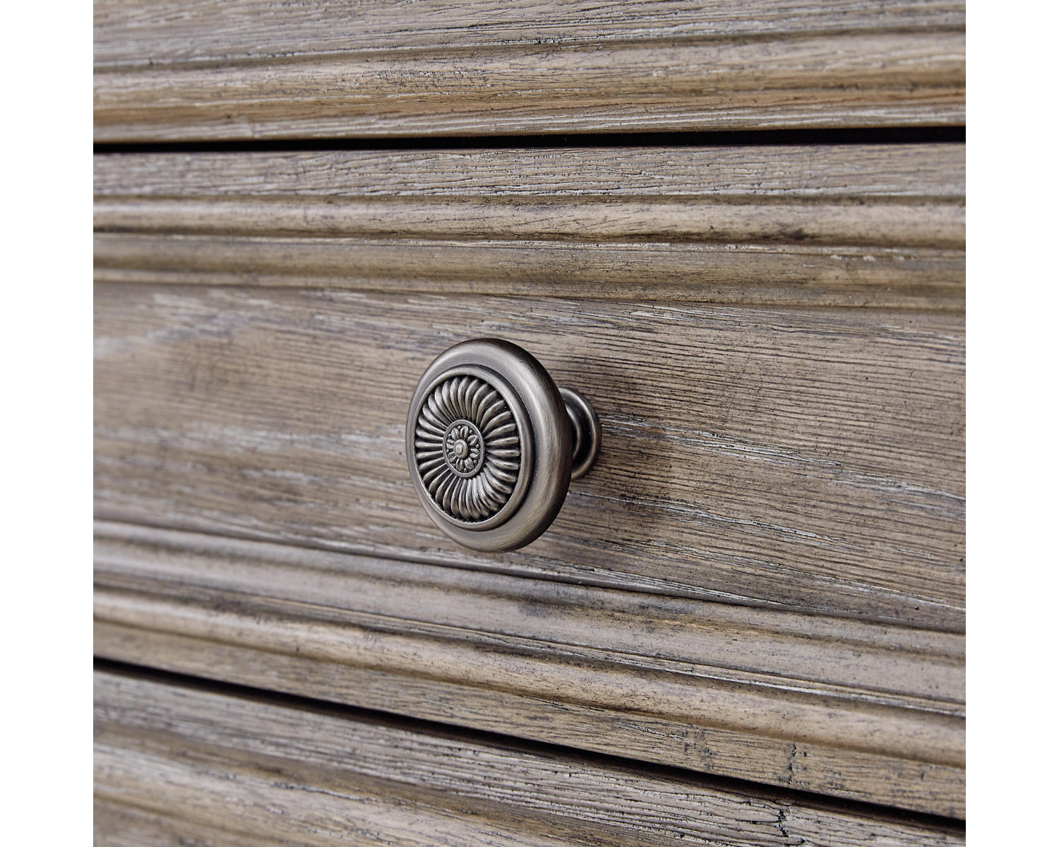 - Light grayish brown finish adds warmth and easy-to-match appeal