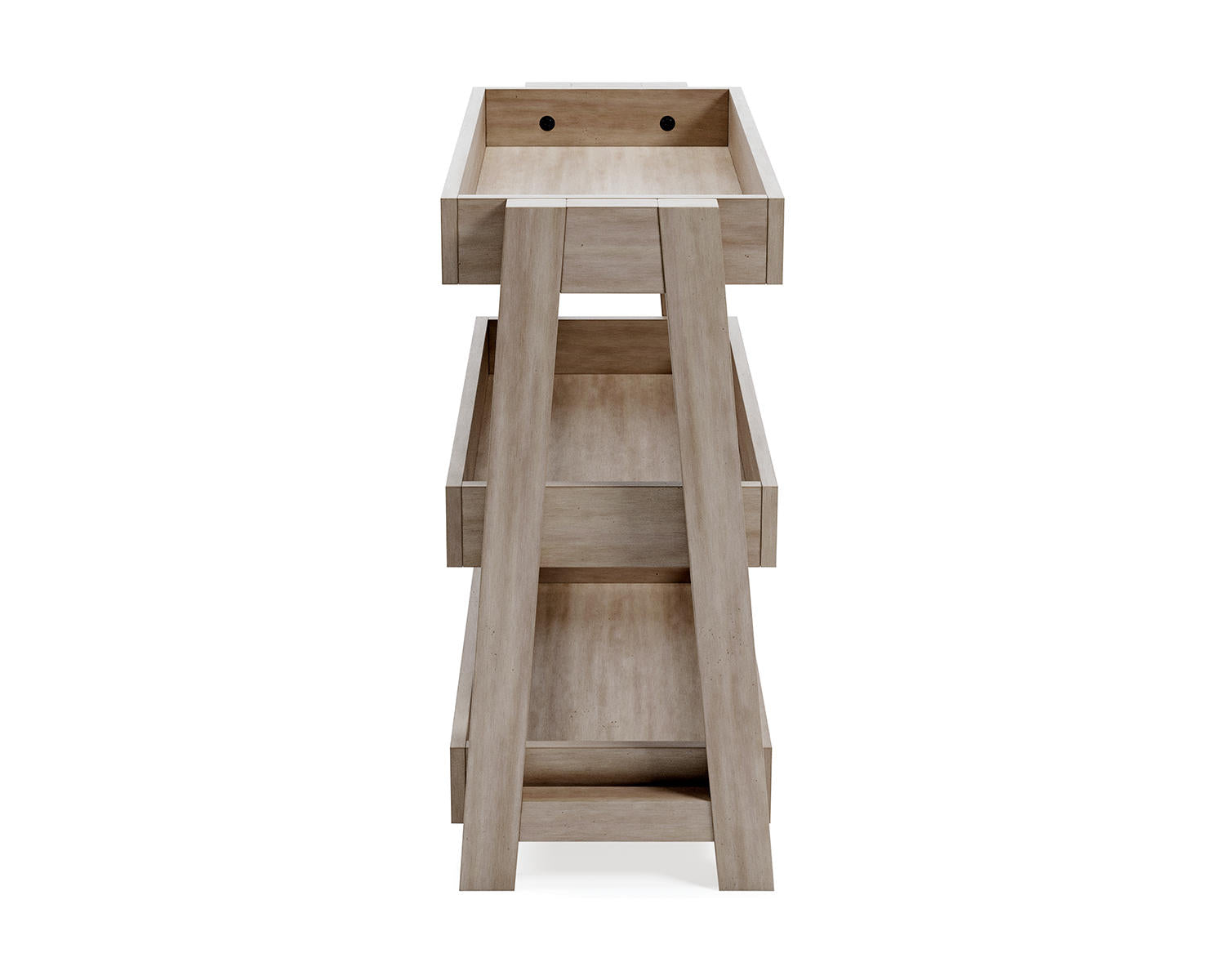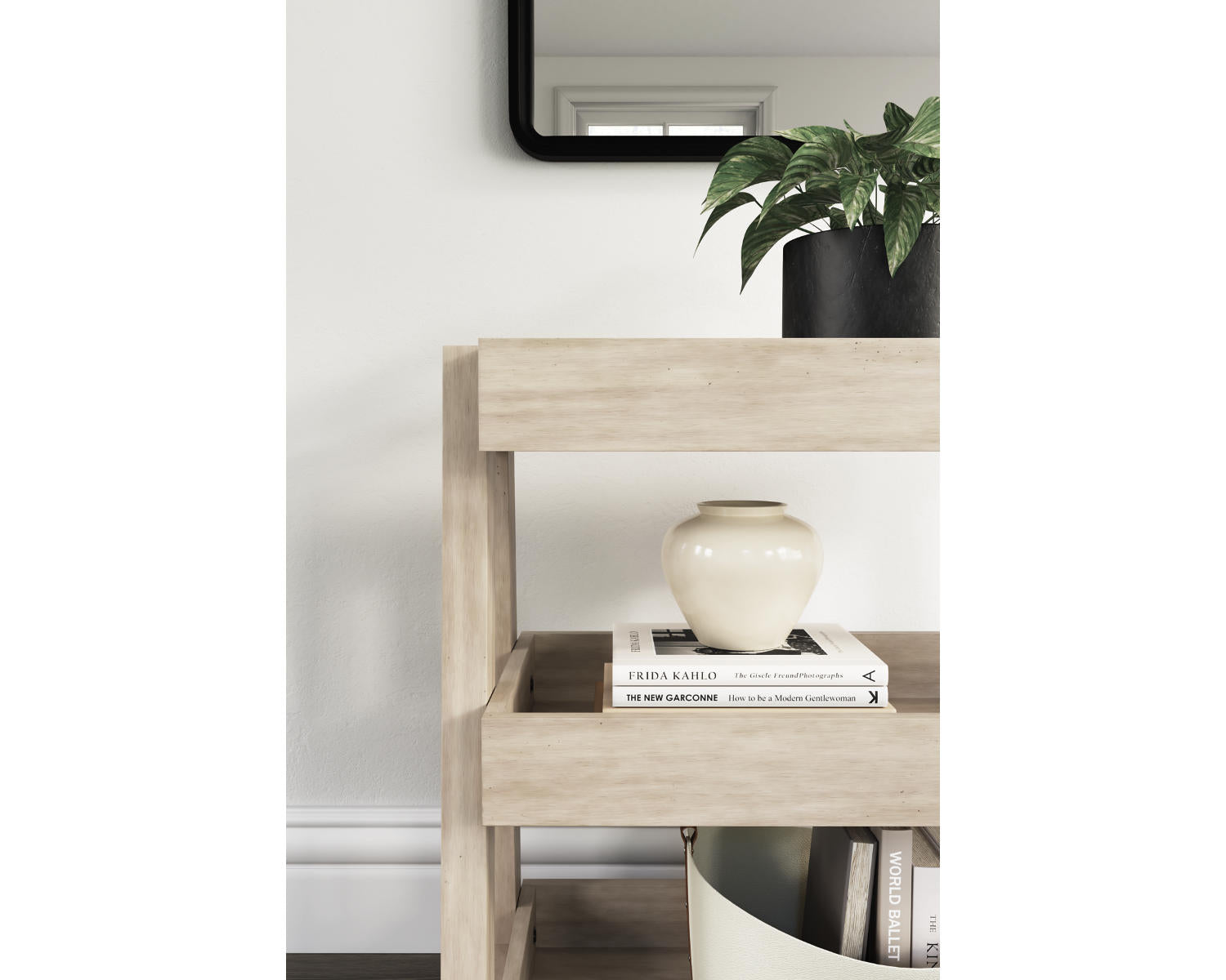 The Blariden Shelf Accent Table in a warm light tan finish brings a simple, versatile touch to any room. This compact piece functions as both a table and a display shelf, ideal for living rooms, entryways, bedrooms, or home offices. With clean lines and understated style, it blends with a variety of décor while adding practical surface space and storage.