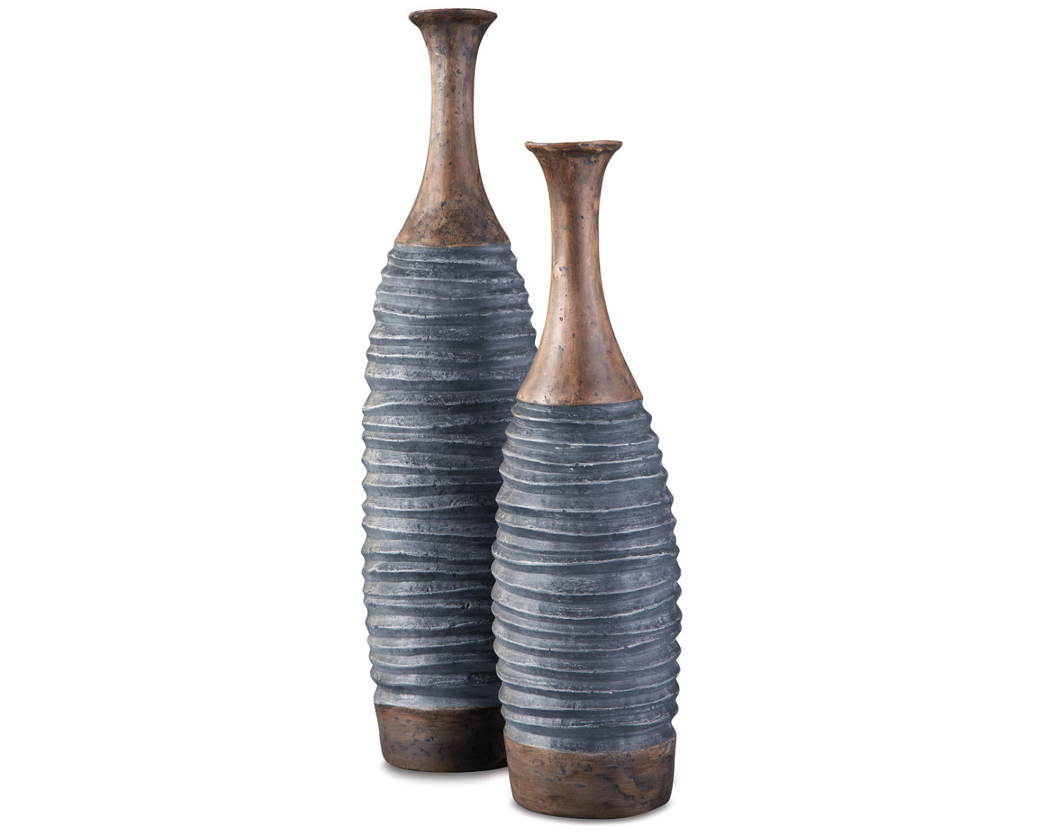 - Set of 2 vases (2/CN) with an Antique Gray/Brown finish