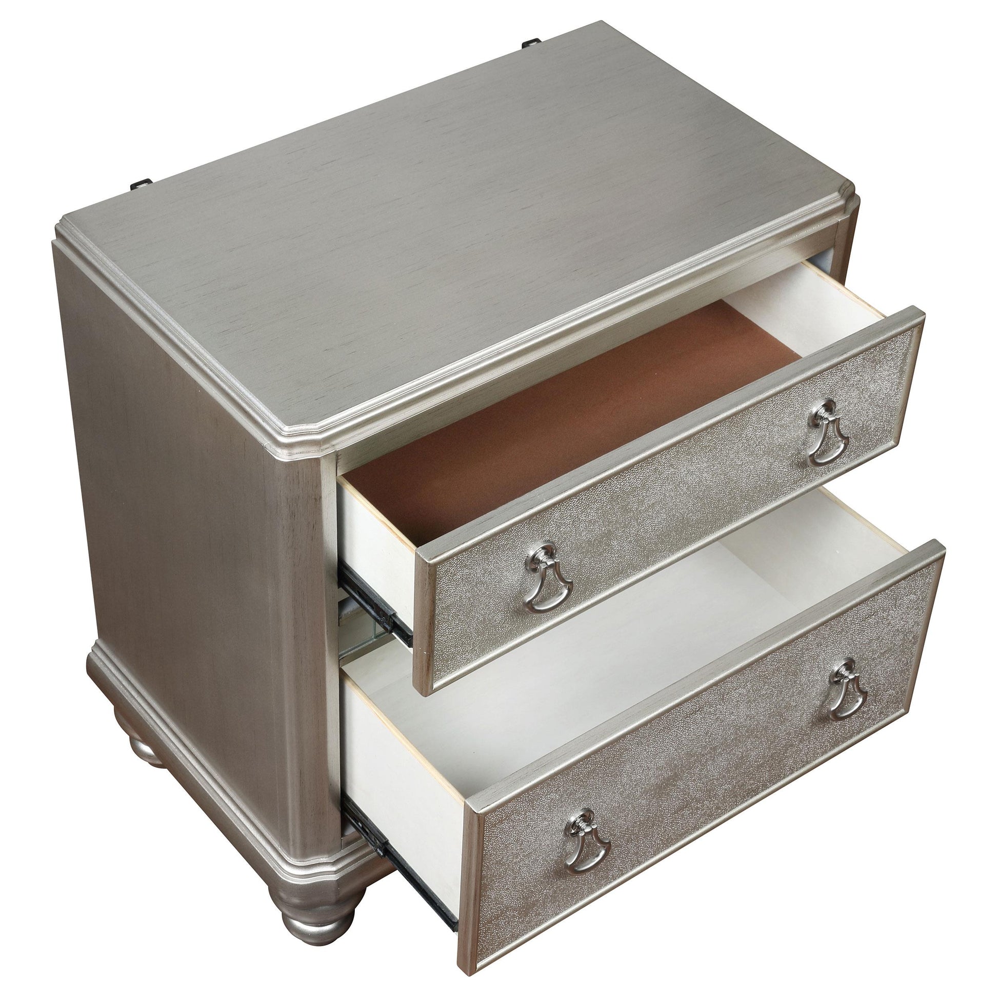 Discover the Bling Game 5-piece California King Bedroom Set in Platinum — a modern, cohesive solution for a stylish master suite. Designed for those who value a clean, luxurious aesthetic, this ensemble brings coordinated design and easy outfitting to your bedroom. The platinum finish and streamlined silhouette offer a sophisticated upgrade that works with a variety of decor styles.