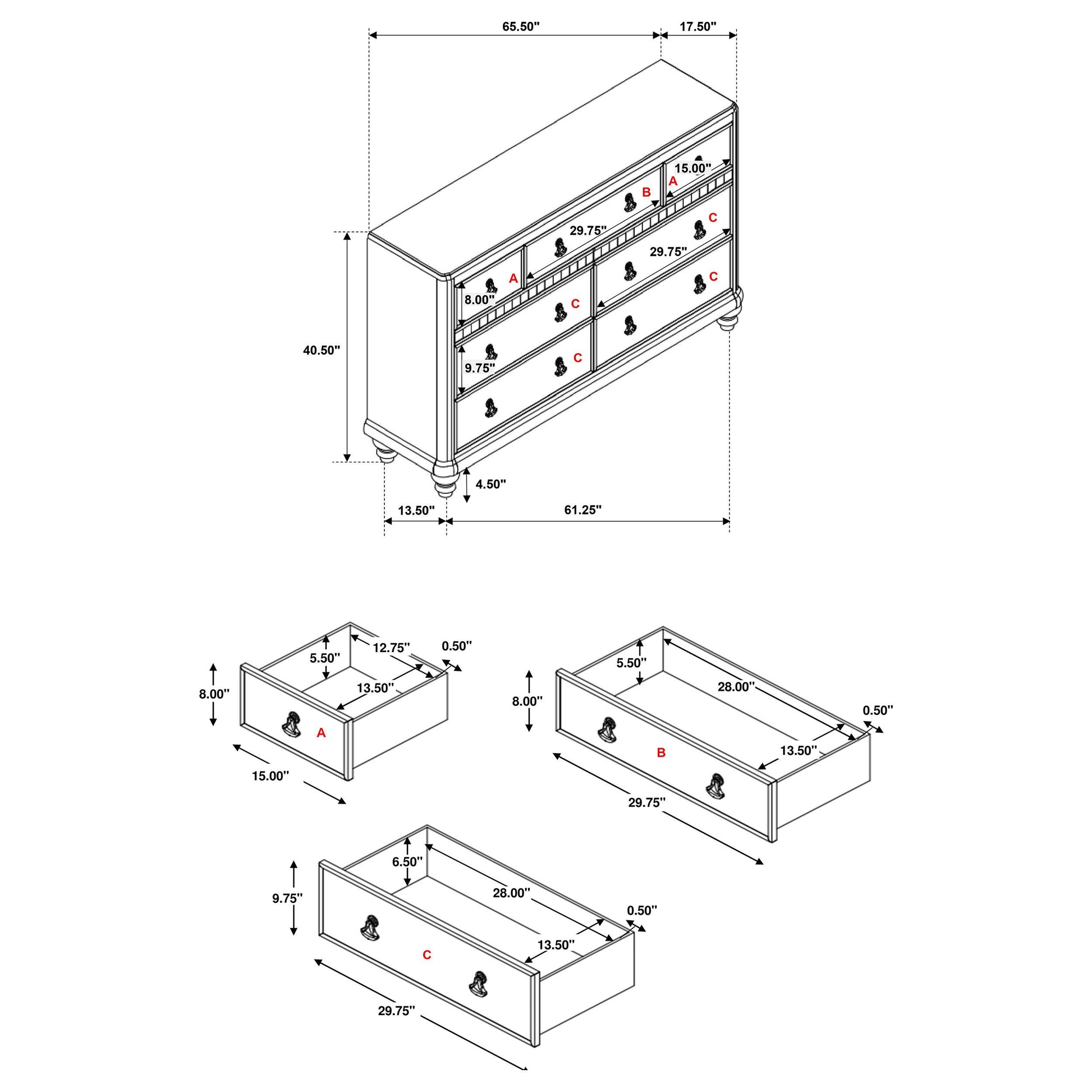 - Five-piece configuration designed to create a complete Eastern King bedroom suite.
