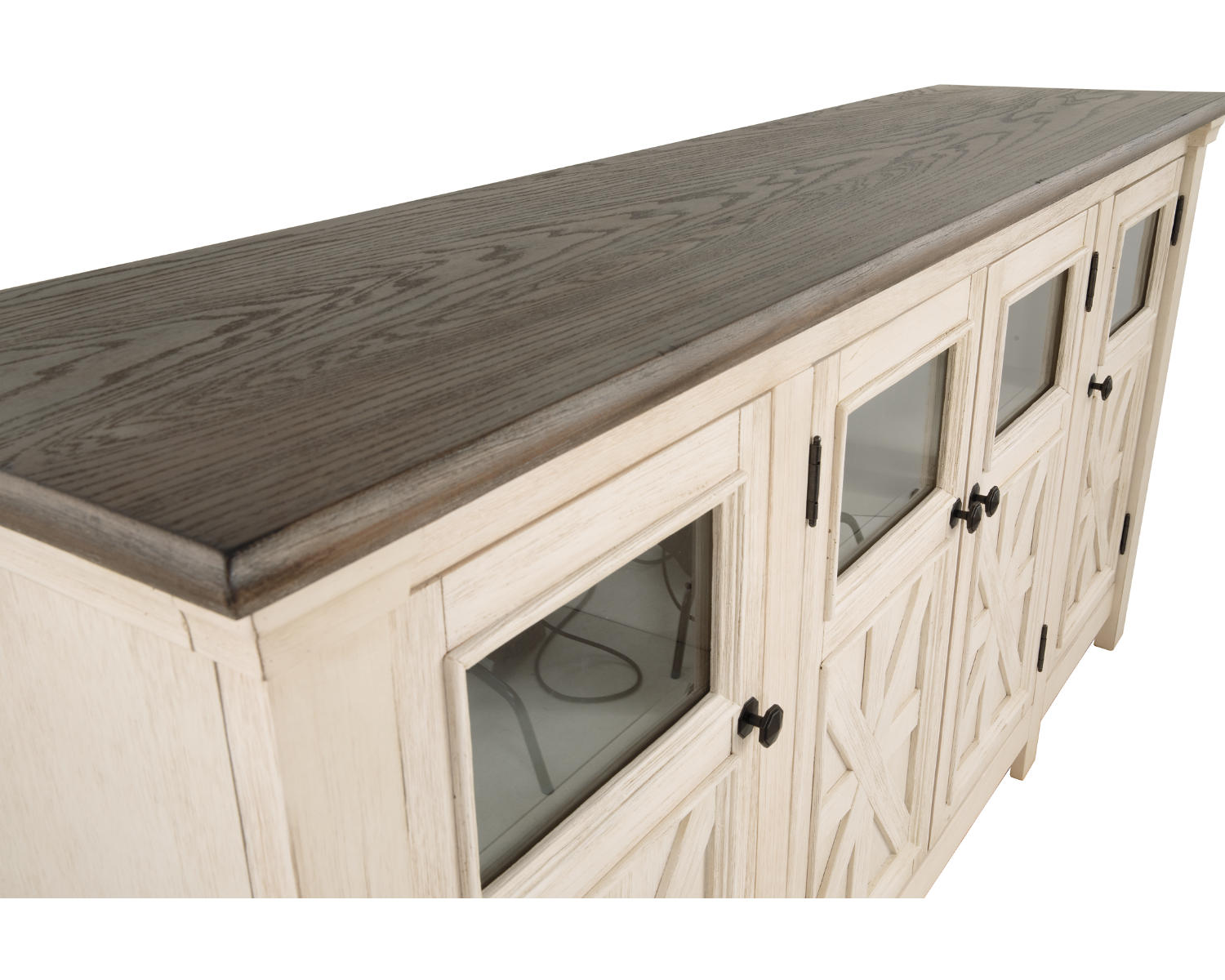 Discover the Bolanburg 74" TV Stand, a spacious two‑tone solution designed for large-screen setups and organized living spaces. Perfect for families and entertainment areas, it combines ample surface area with a clean, modern aesthetic. The white finish with weathered gray accents adds contemporary style while keeping your media organized.