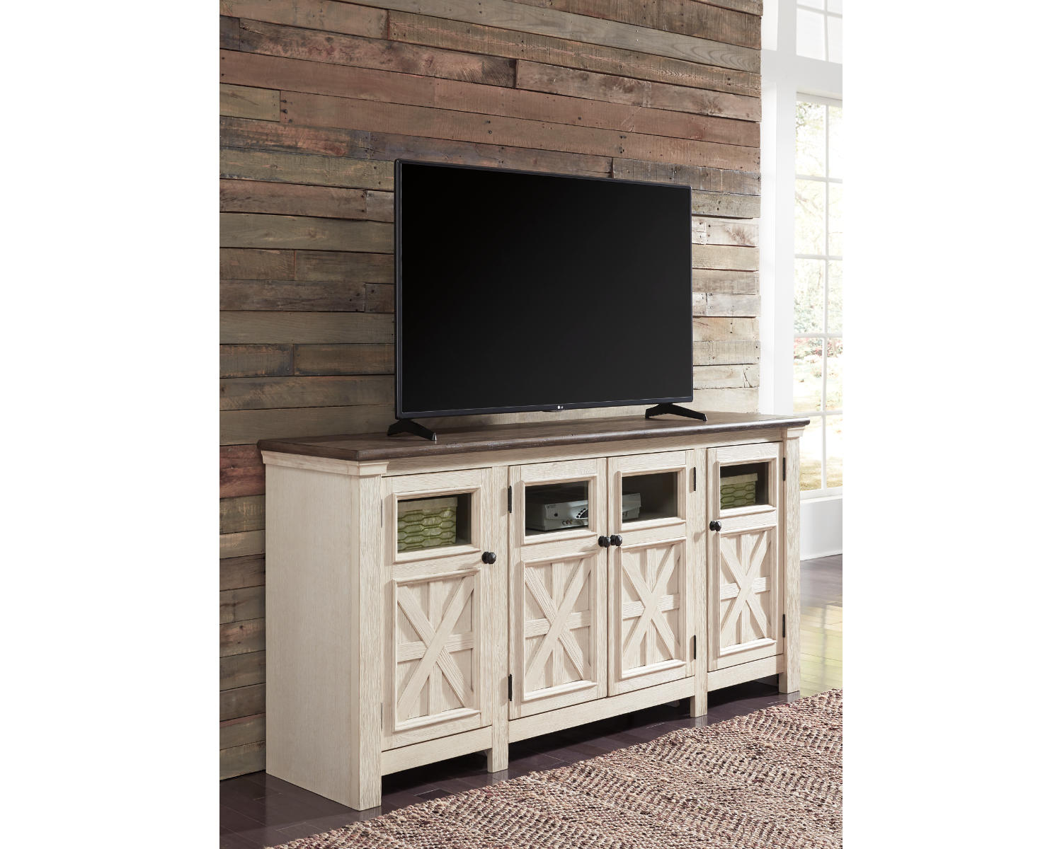 This TV stand is built to deliver reliable, durable support for everyday use. Its substantial construction provides a sturdy surface for large TVs and devices, while the two-tone finish helps it blend with a variety of decor styles. For buyers seeking generous size and a stylish, value-driven option, this Bolanburg stand offers strong value without compromising on design.