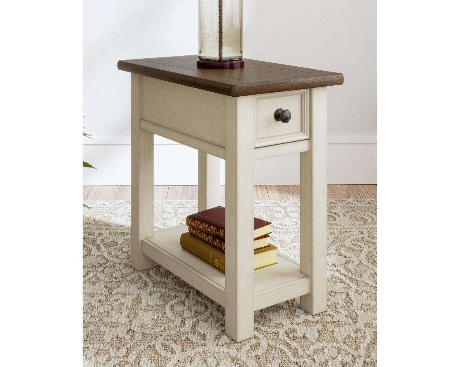 The Bolanburg Chairside End Table is a compact, two-tone accent piece designed to sit beside your sofa or chair. It adds a convenient surface for drinks, remotes, and small essentials, without taking up precious floor space.