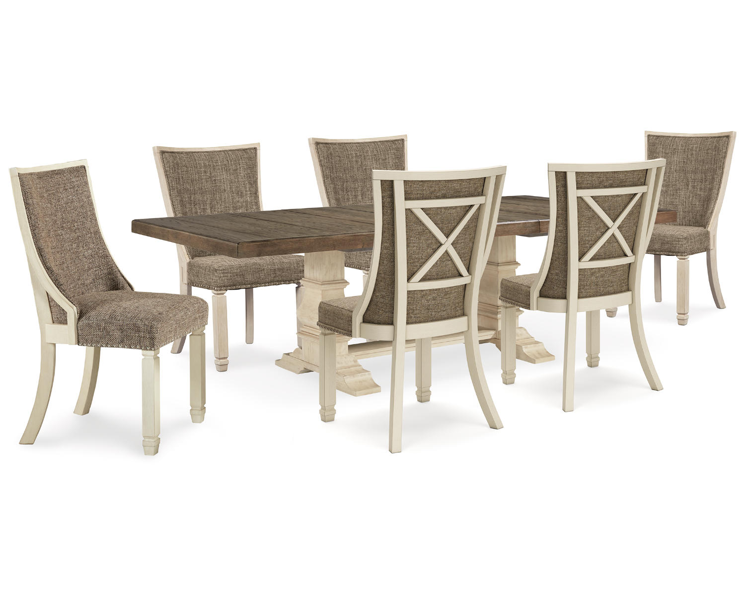 Elevate your dining space with the Bolanburg Dining Table and 6 Chairs in Antique White. This coordinated set offers a timeless finish and a versatile silhouette for everyday meals, family gatherings, or entertaining guests.