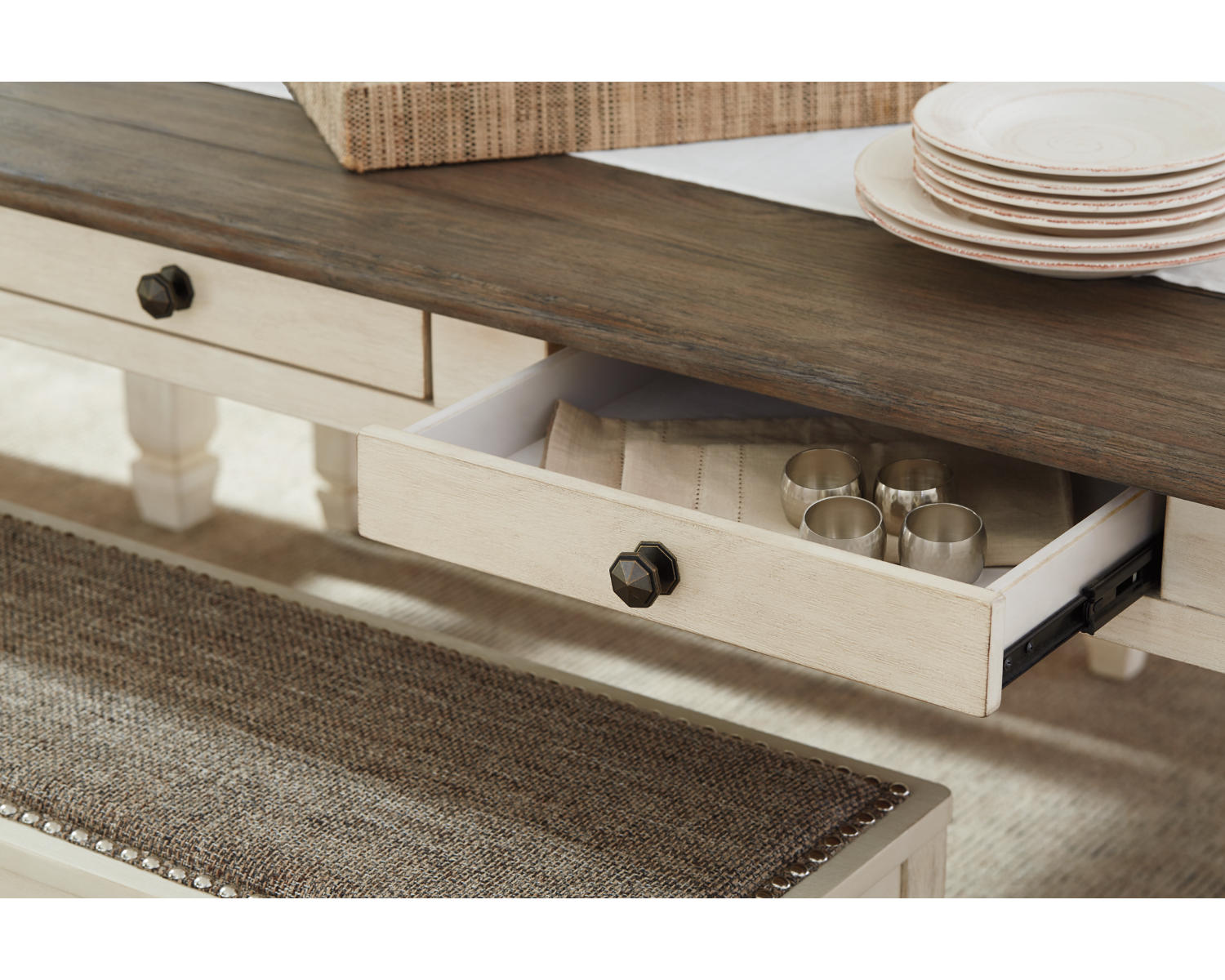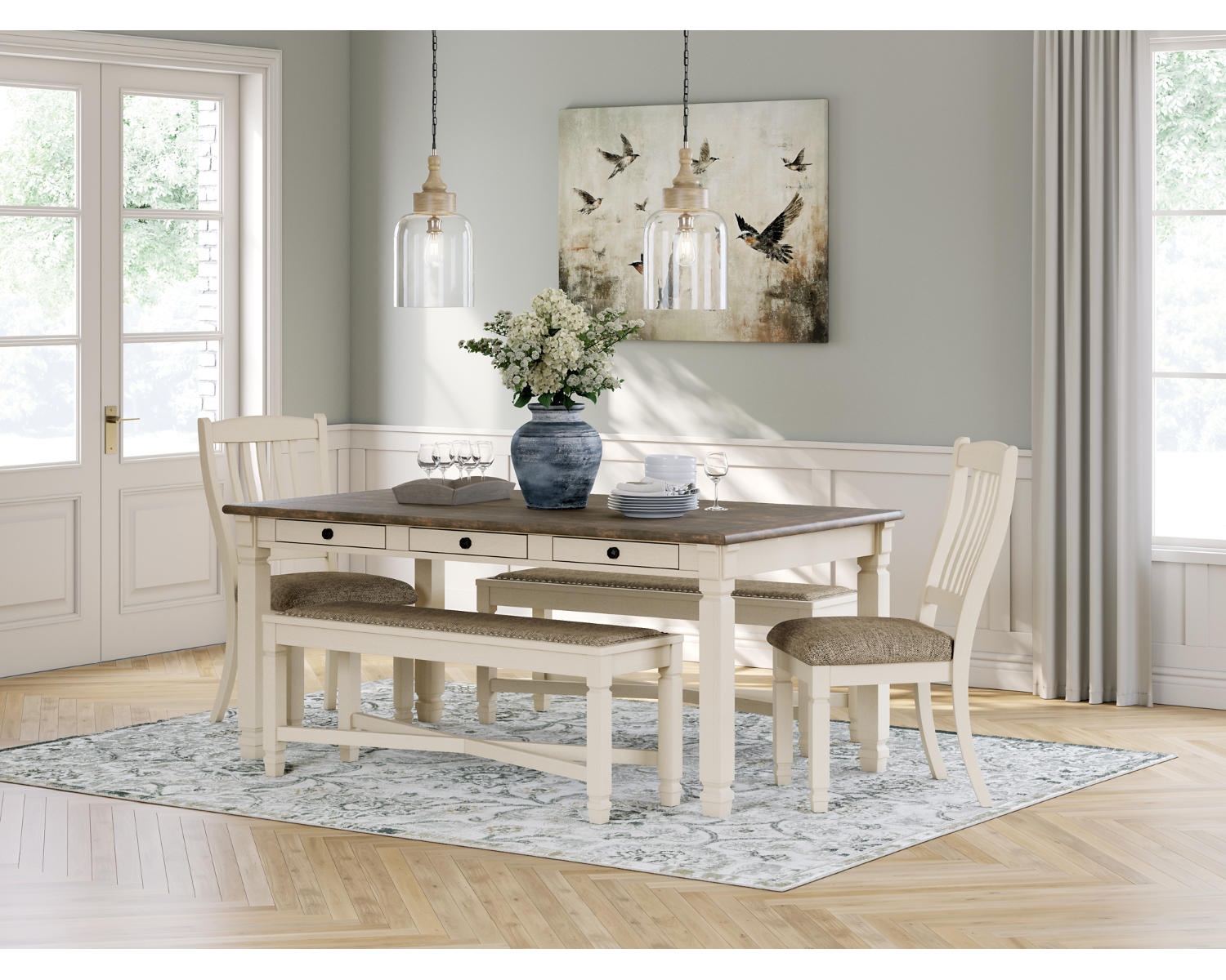Elevate your dining space with a timeless, ready-to-use setup. The Bolanburg dining table with 2 chairs and 2 benches comes in an Antique White finish, ideal for family meals and casual gatherings.