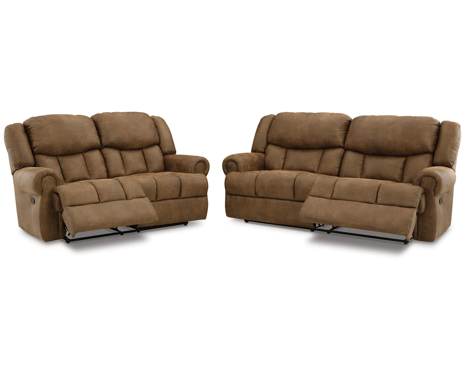 - Two-piece set: a full-size reclining sofa and a matching reclining loveseat