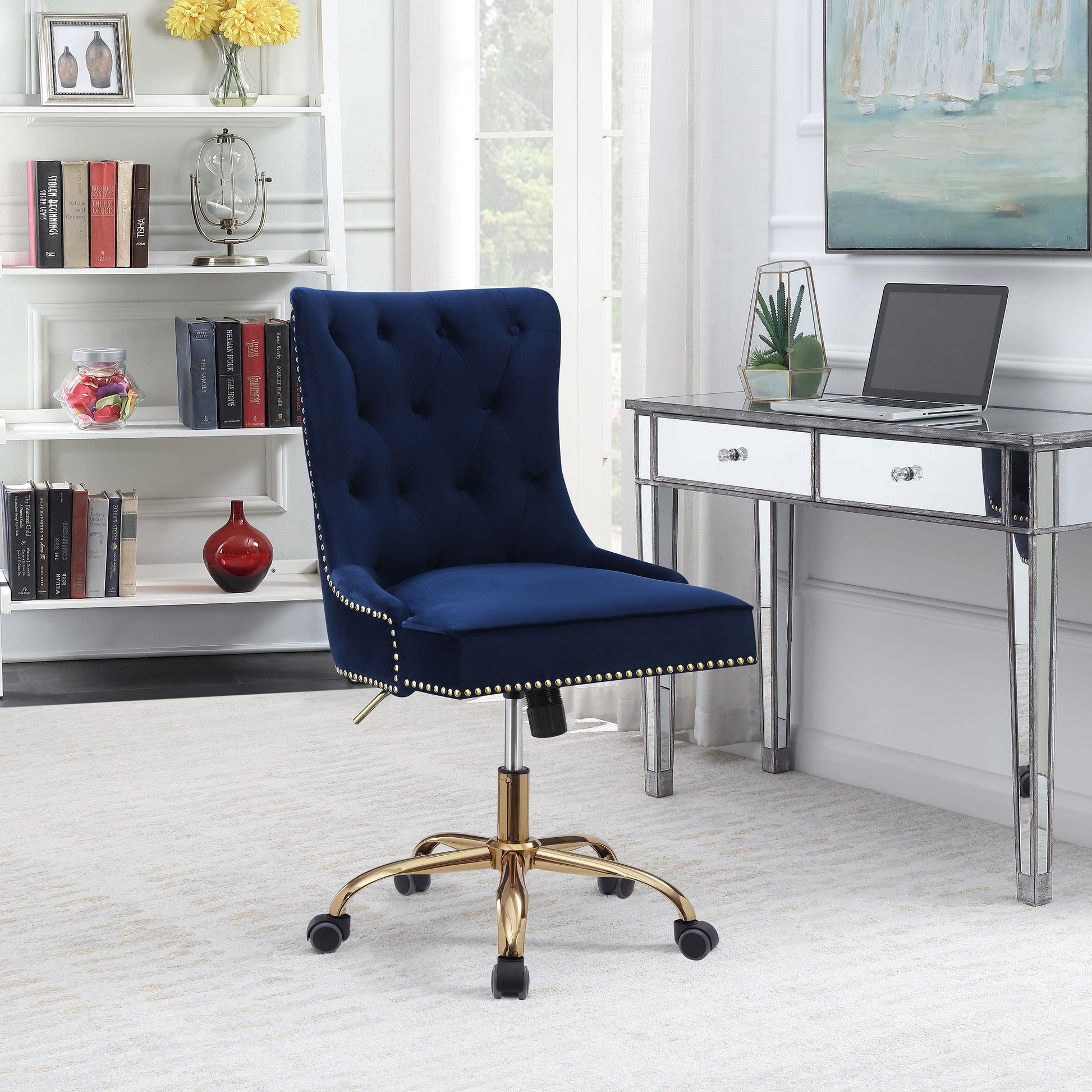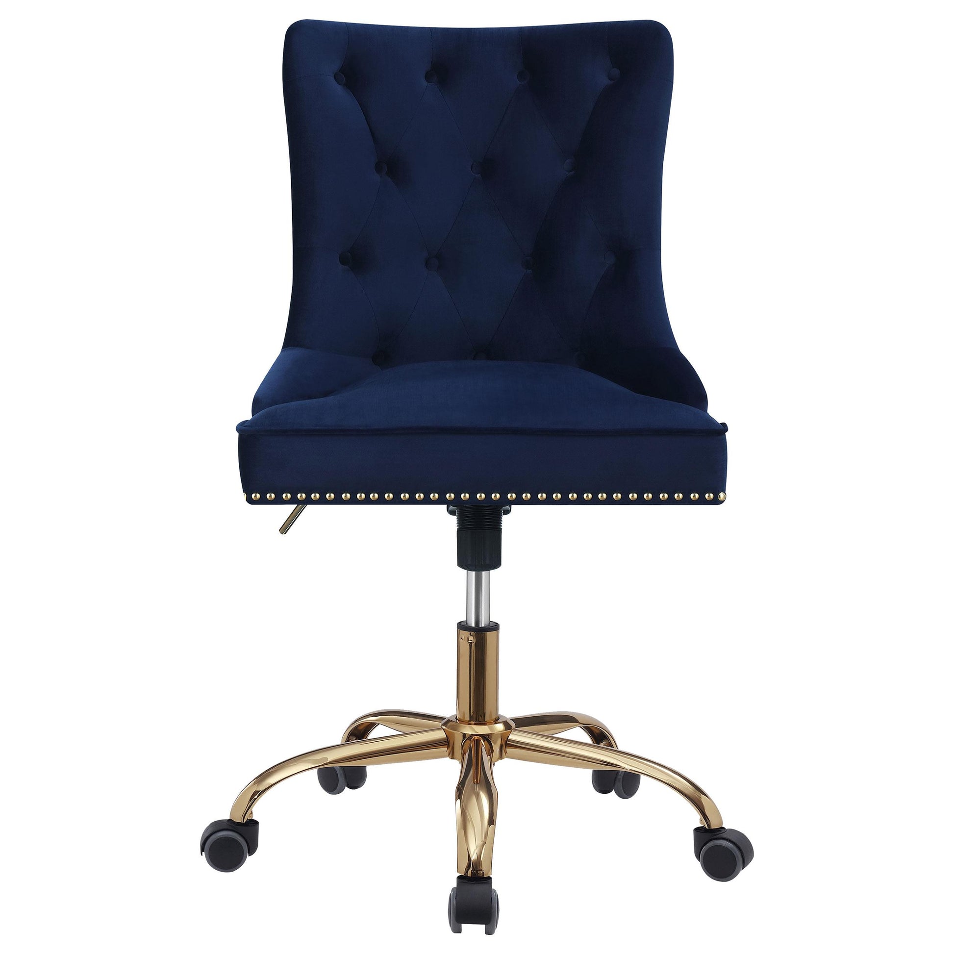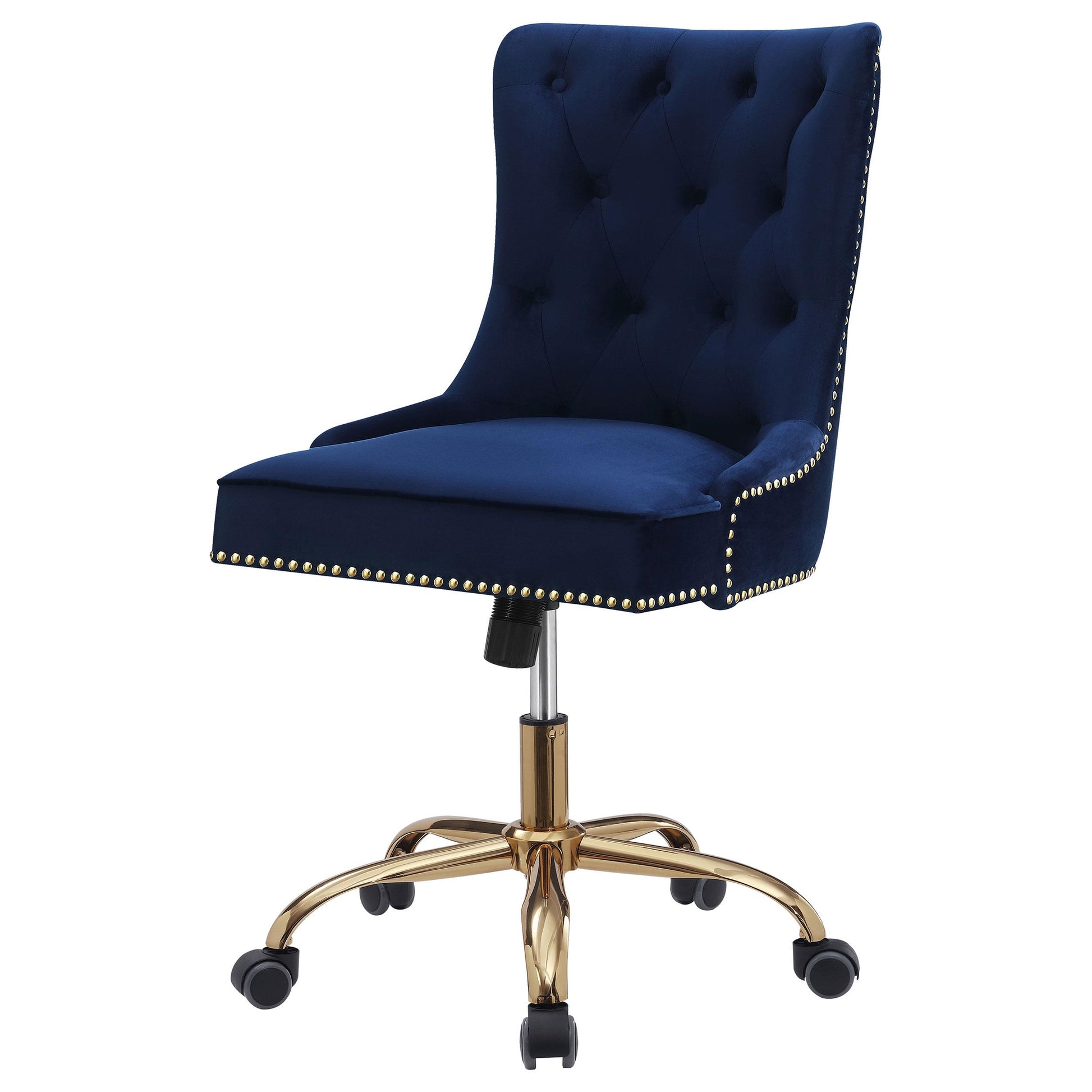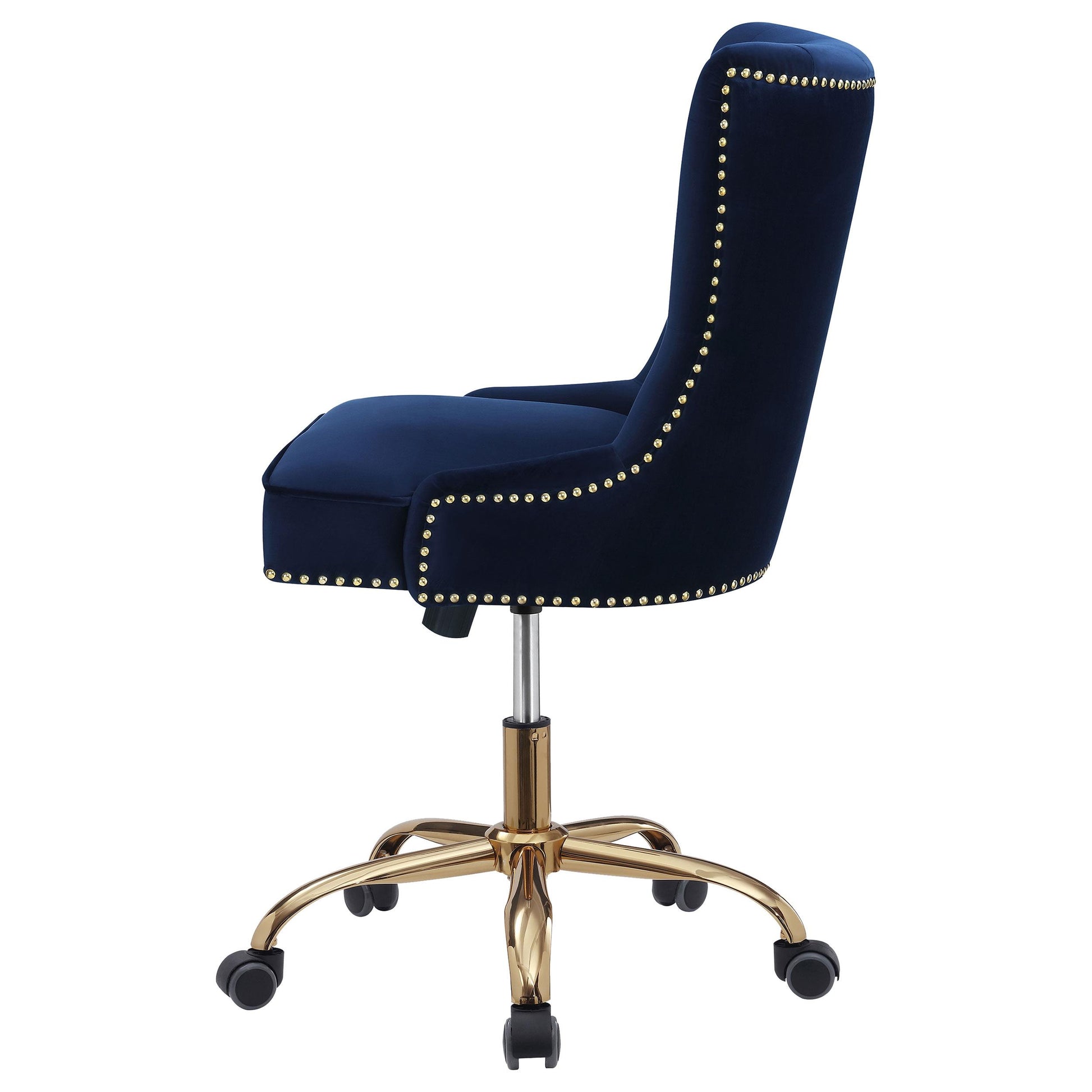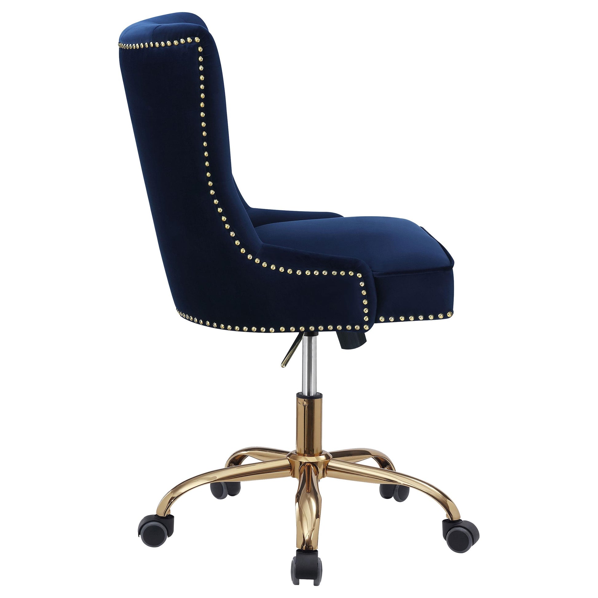 Bowie Upholstered Office Chair with Nailhead Blue and Brass