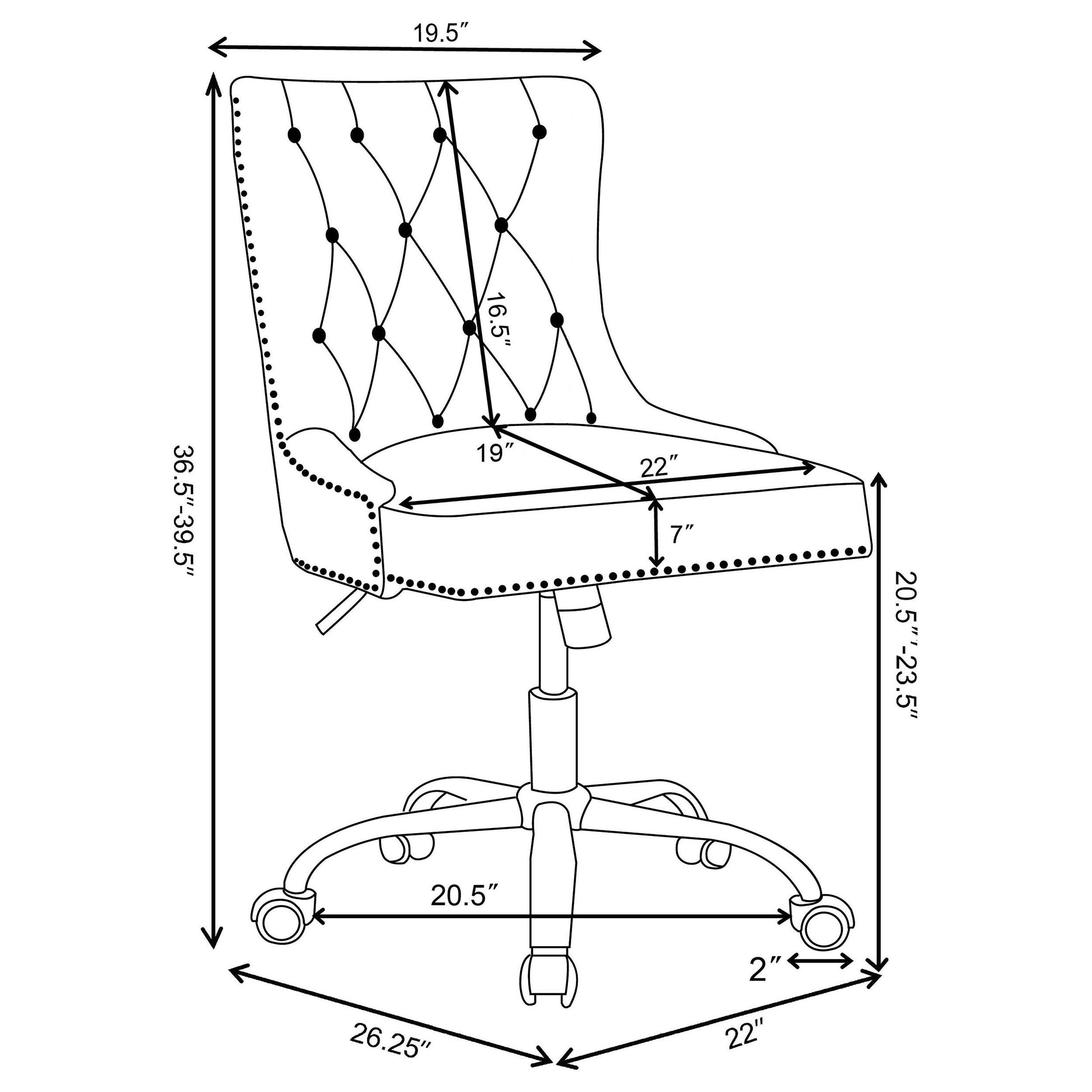 Meet Bowie, a refined upholstered office chair designed for home offices and professional workspaces. It features blue upholstery accented with brass nailhead trim, delivering a distinguished look without sacrificing comfort. This chair is ideal for anyone who values style and everyday reliability in their workspace.