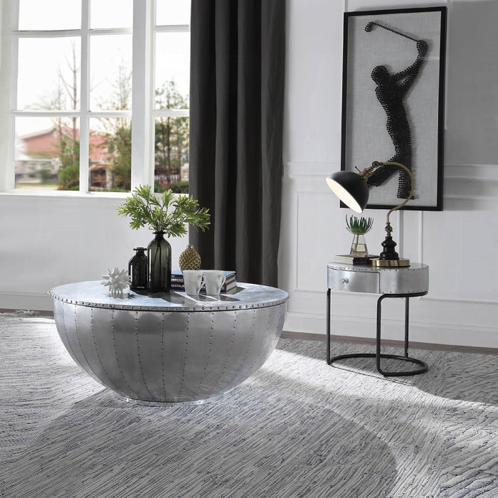 Discover the Brancaster End Table—an all-around stylish, assembled drum end table crafted for contemporary living spaces. Built with aluminum and composite wood, it's a dependable choice for living rooms, bedrooms, or offices. This compact 20" square table delivers a clean, modern look with practical functionality.