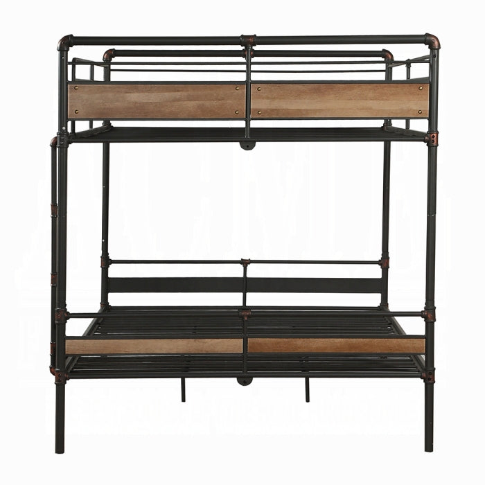 - Queen-over-queen bunk bed design with durable metal tube frames