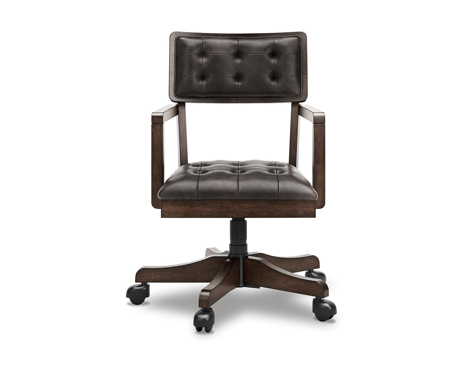 Meet the Breckington Home Office Desk Chair—a versatile seating solution for your home workspace. This chair, finished in Dark Brown, blends into a variety of décor while offering comfortable, reliable seating for daily tasks at your desk.