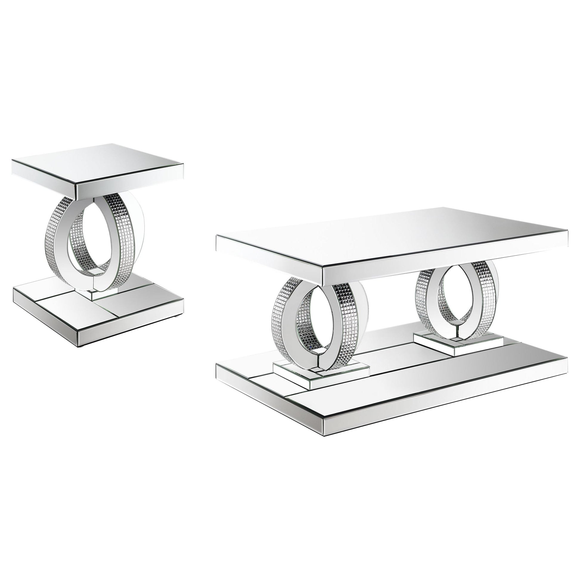 The Breena 2-piece set brings a touch of modern elegance to living spaces with mirrored surfaces and a sleek silver finish. Designed for contemporary homes, it pairs a coffee table with a coordinating end table to create a cohesive, reflective centerpiece that enhances any seating area.