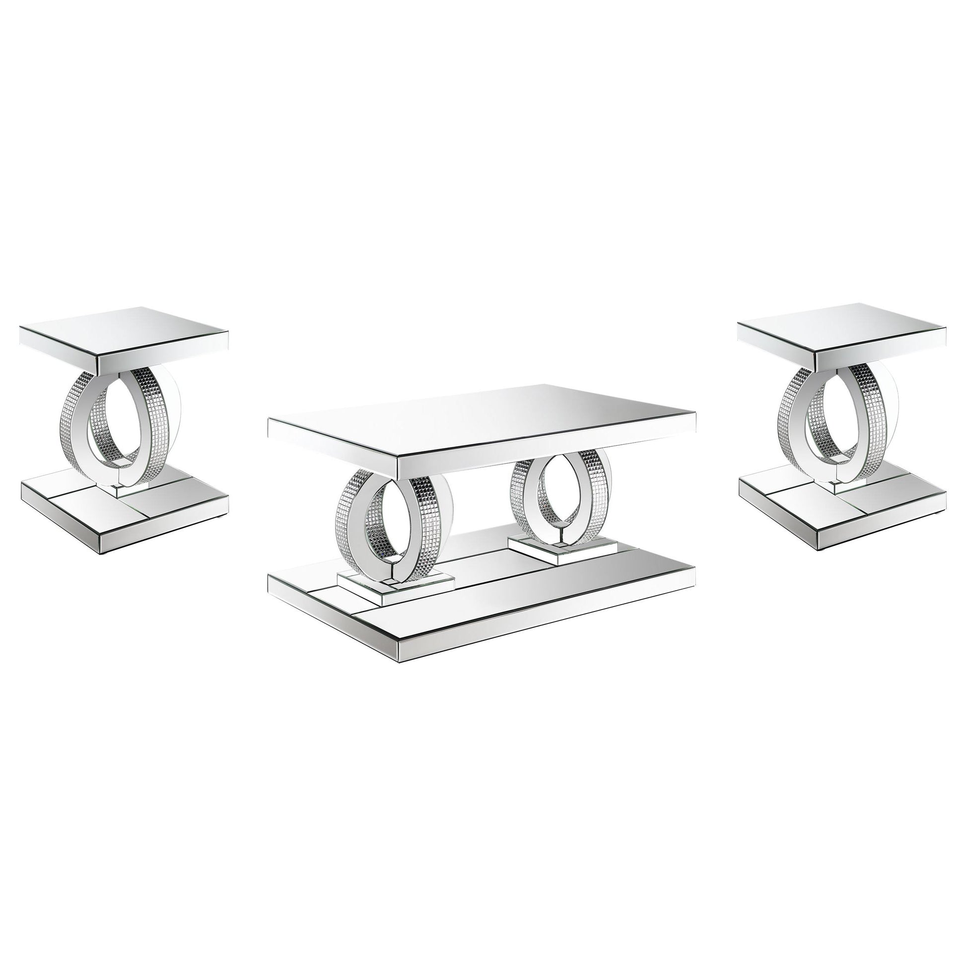 Breena 3-piece Mirrored Coffee and End Table Set Silver