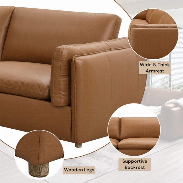 The Brighton Modular Right Facing Arm Chair brings contemporary elegance and everyday comfort to your living space. Crafted in brown top-grain leather, this chair is built to be the inviting anchor of a modular seating setup. Perfect for family gatherings or quiet evenings at home, its sleek silhouette and plush cushions balance style with relaxation.