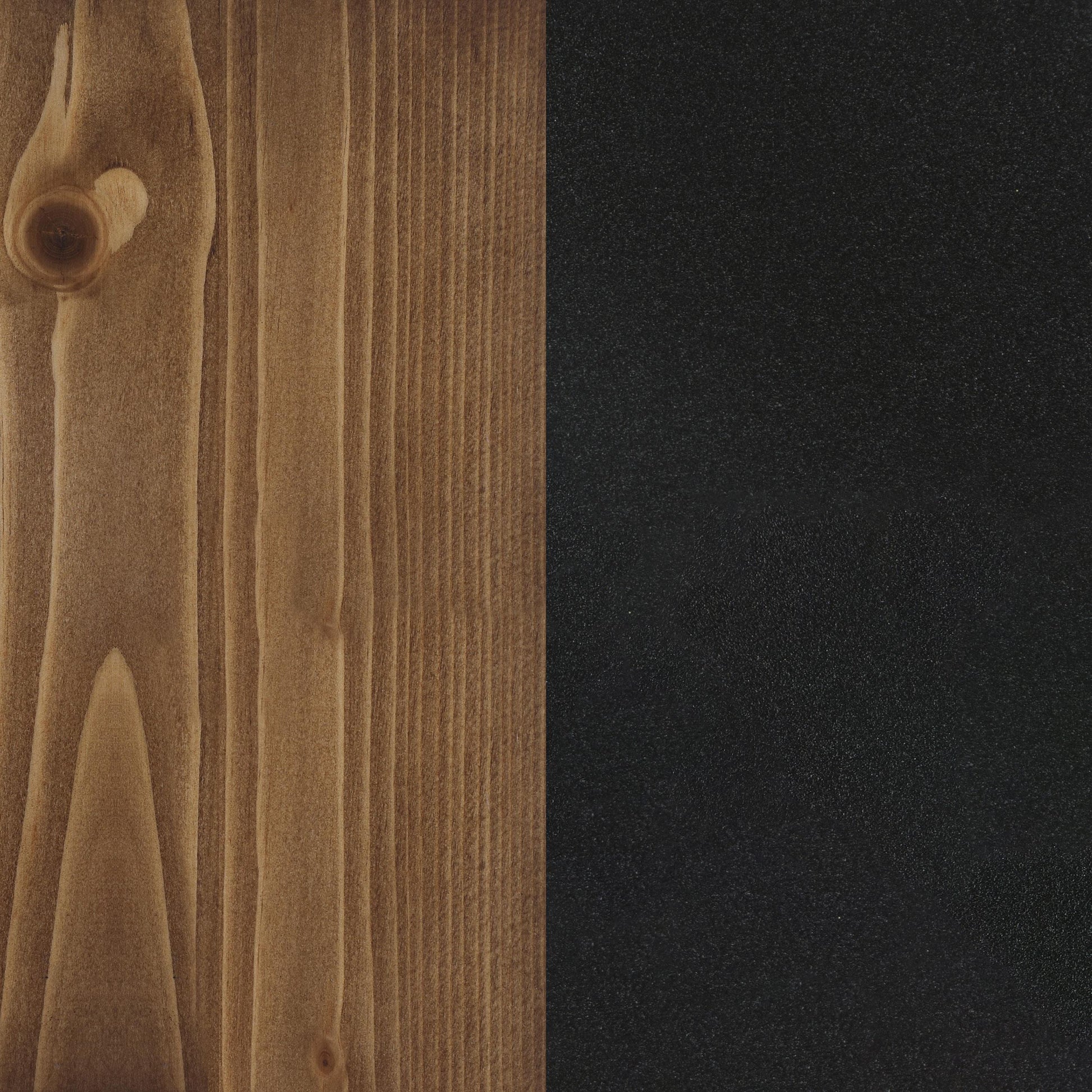 - Two-tone finish: dark brown tabletop with contrasting black hardware