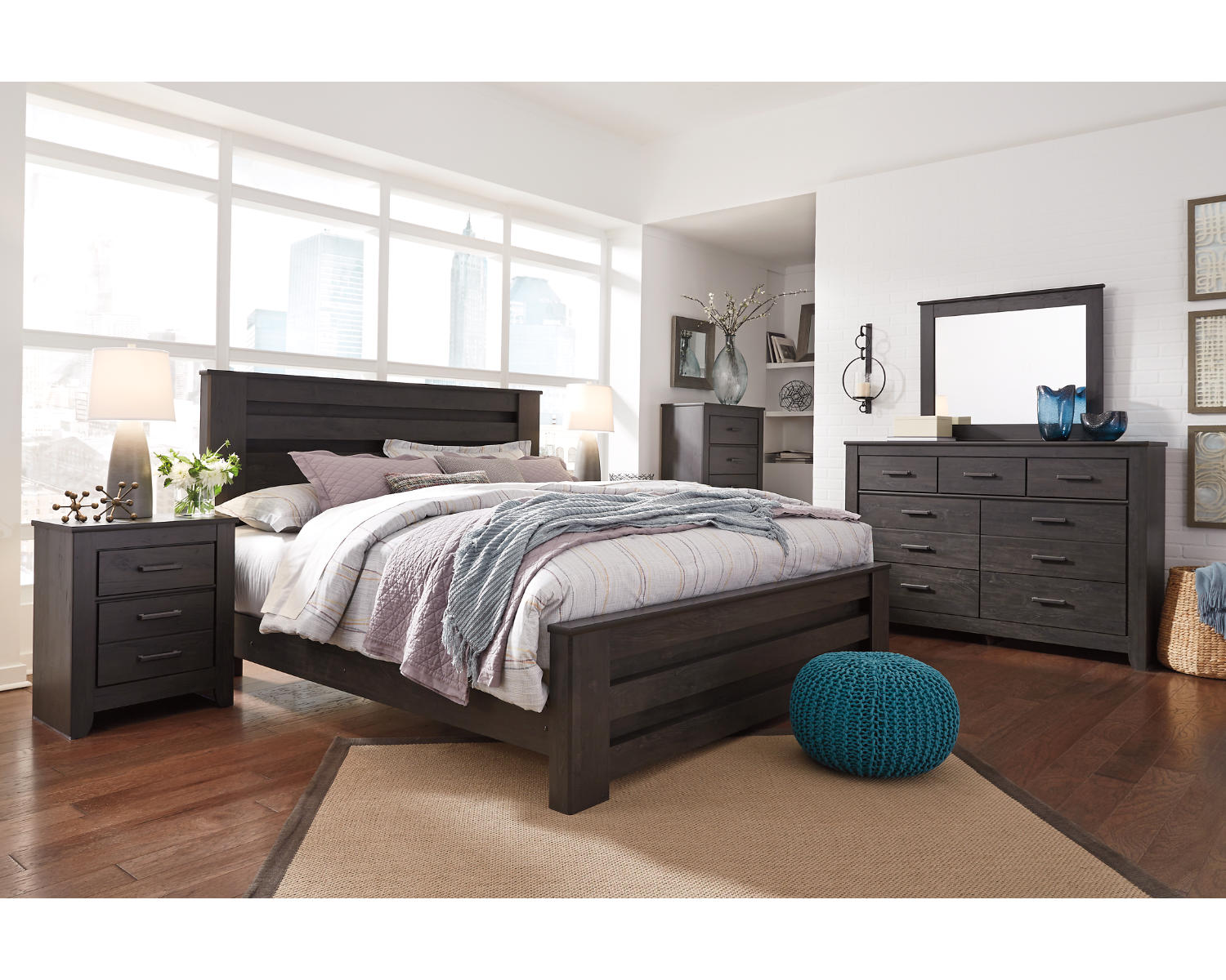Brinxton King Panel Bed, Dresser, Mirror, Chest and Nightstand - Charcoal