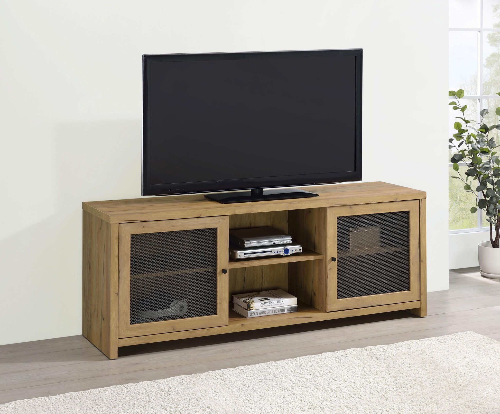 Bristol Mesh Door Rectangular TV Console Golden Oak and Gunmetal