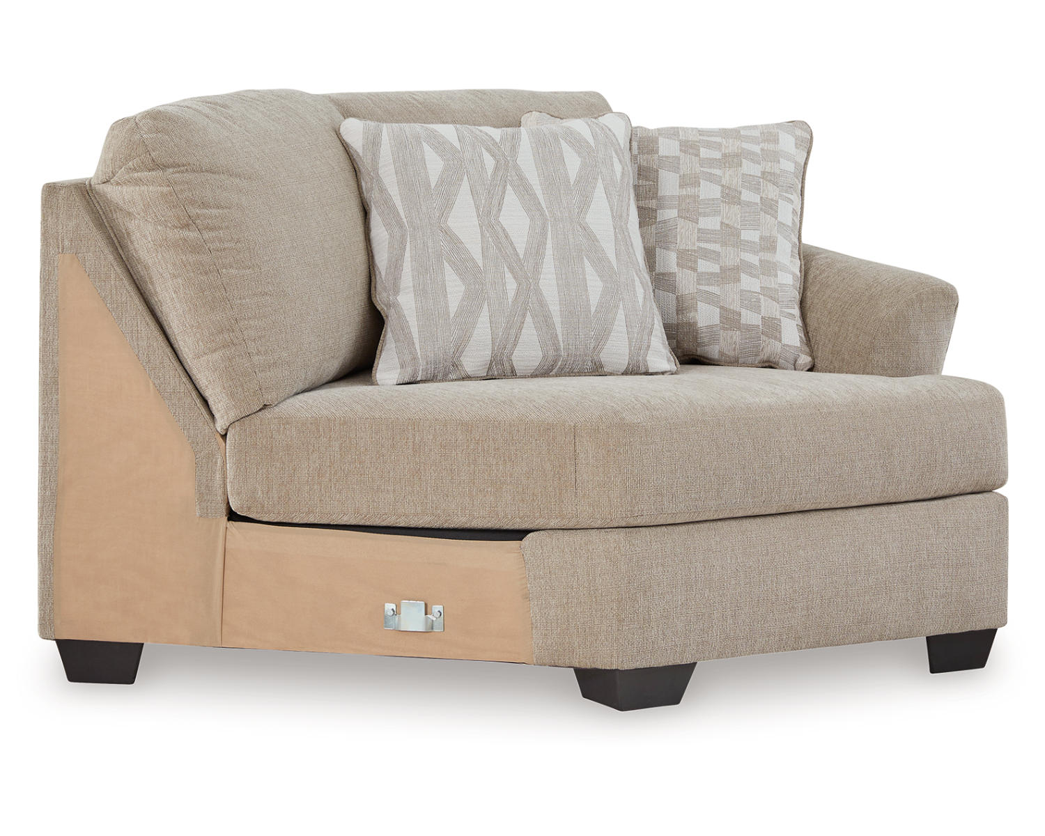 Introducing the Brogan Bay Right-Arm Facing Cuddler, a compact sectional designed for cozy lounging and everyday living. This RAF cuddler comes in Cork upholstery, adding a warm, versatile look to any living space. Ideal for smaller rooms or open-plan layouts, it pairs easily with other modular pieces to fit your layout.